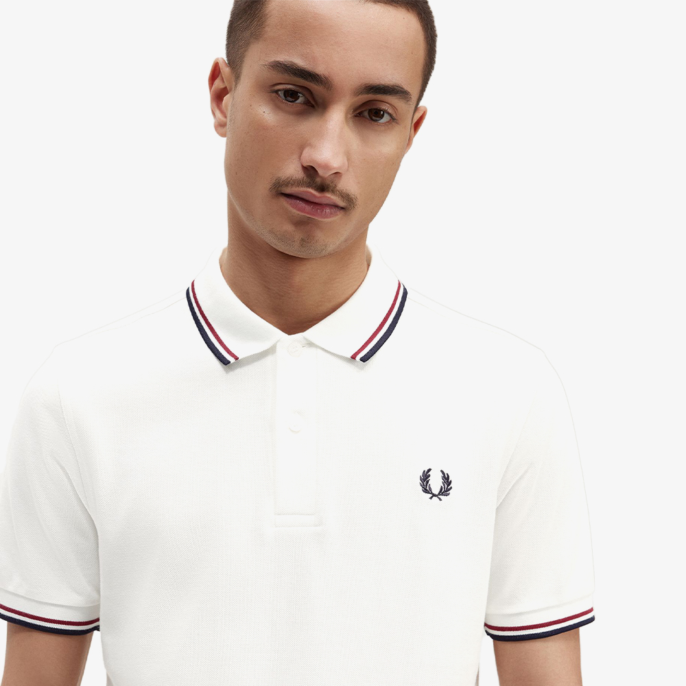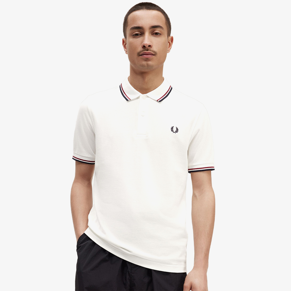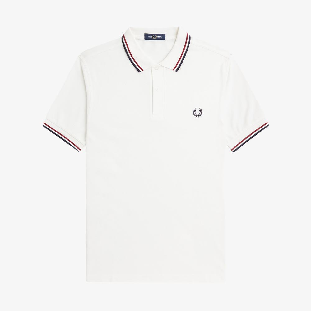 프레드페리 M3600 트윈 팁 프레드페리 셔츠 스노우화이트/번트레드/네이비