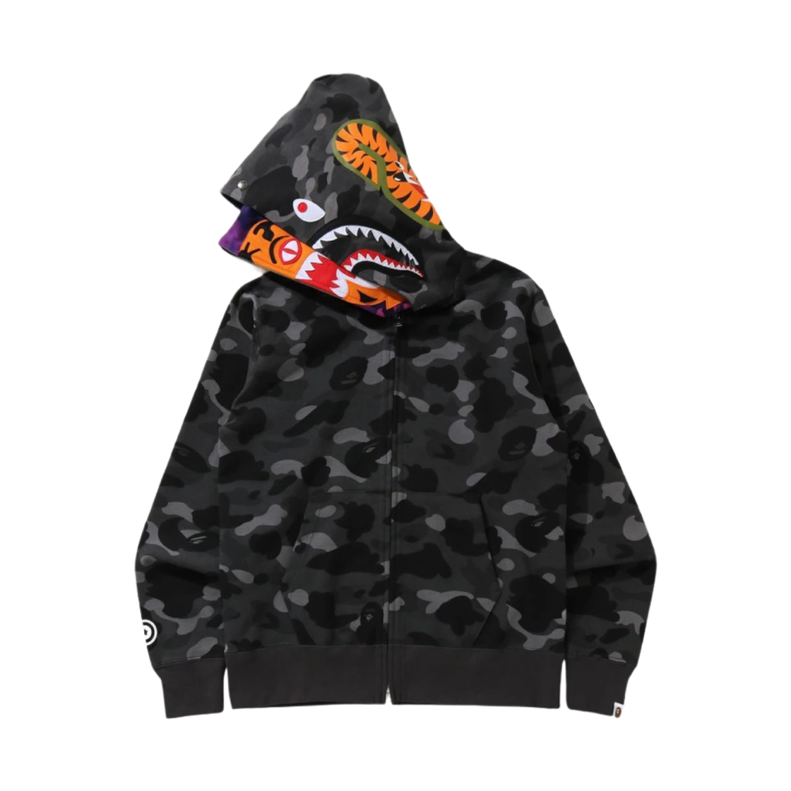 BAPE Color Camo Tiger Shark Wide Full Zip Hoodie Black