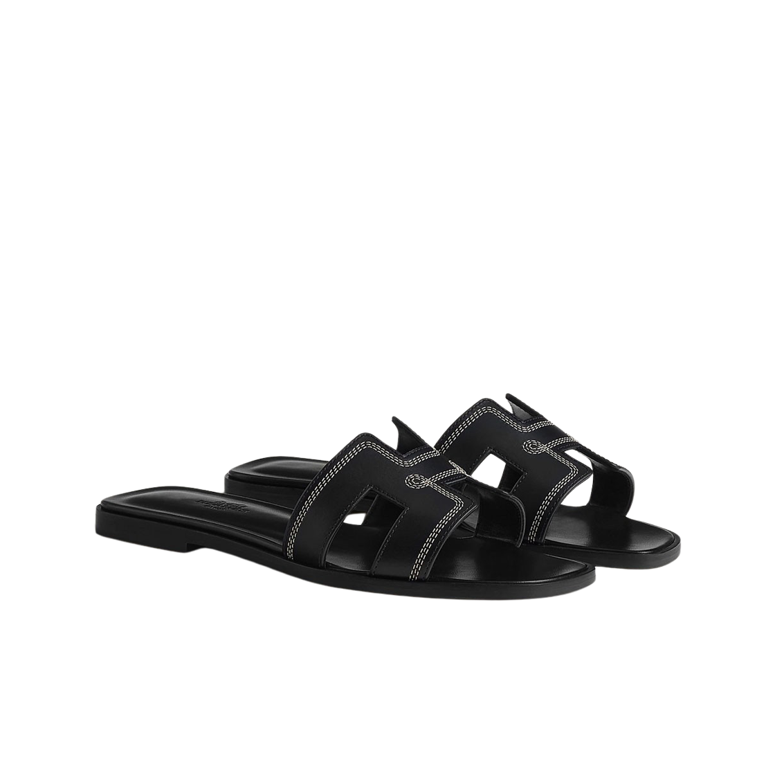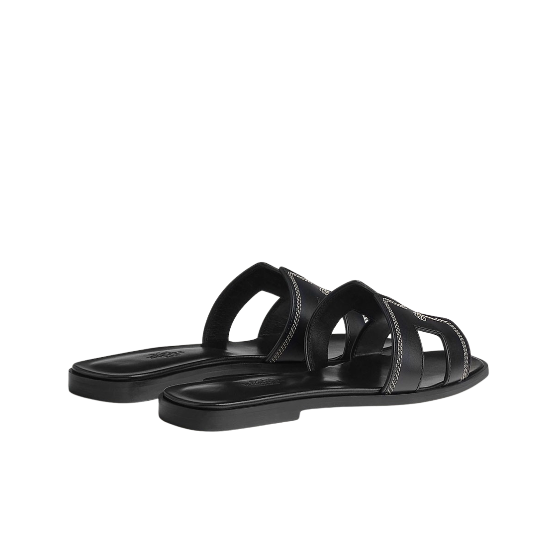 (W) Hermes Oran Sandal Embroidered Calfskin & Noir