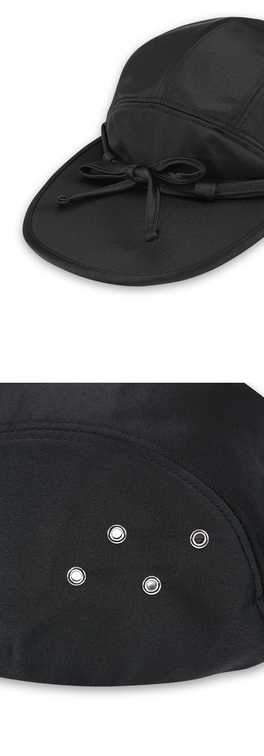 Material Outshell : 170g/sqm Polyester 100% Liner : Coolmax liner Colour : Black - 매끄럽고 은은한 광택감의 소재 - 넓고 깊은 챙으로 안정적인 착용감 - 후면 사이즈 조절 가능한 스트링 - 브랜드 로고 메탈 스토퍼와 유팁 사용 - 앞판 디자인 스트랩 - 땀흡수에 용이한 Coolmax Liner 사용
