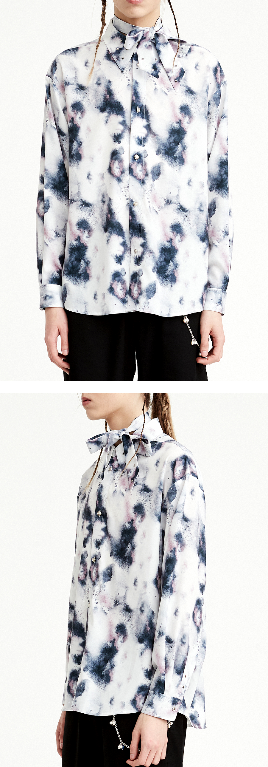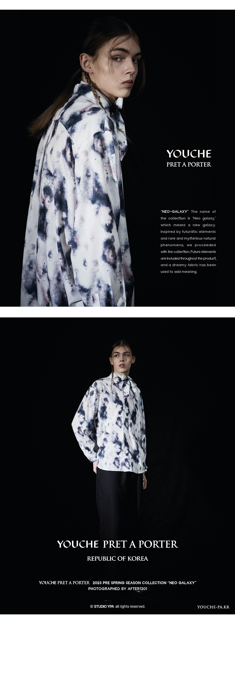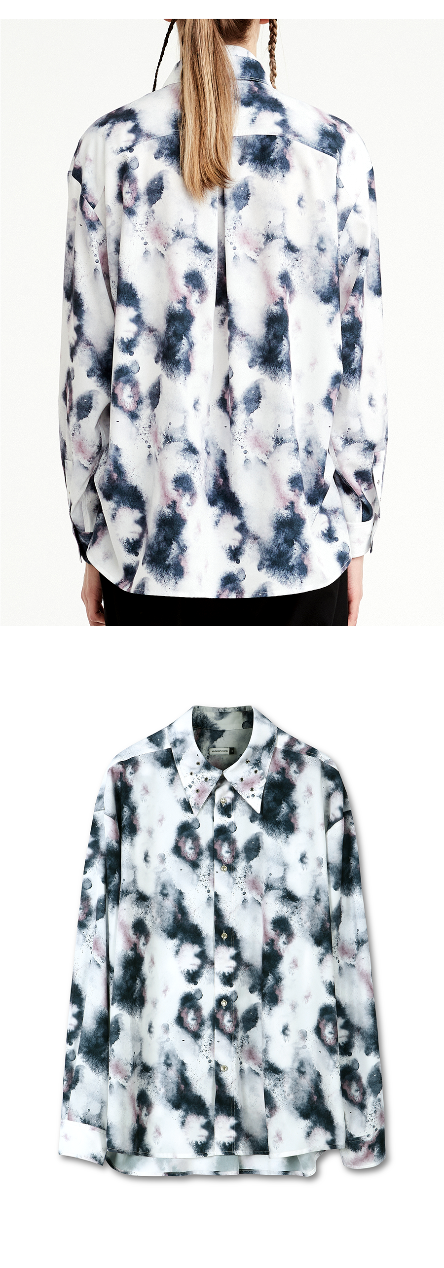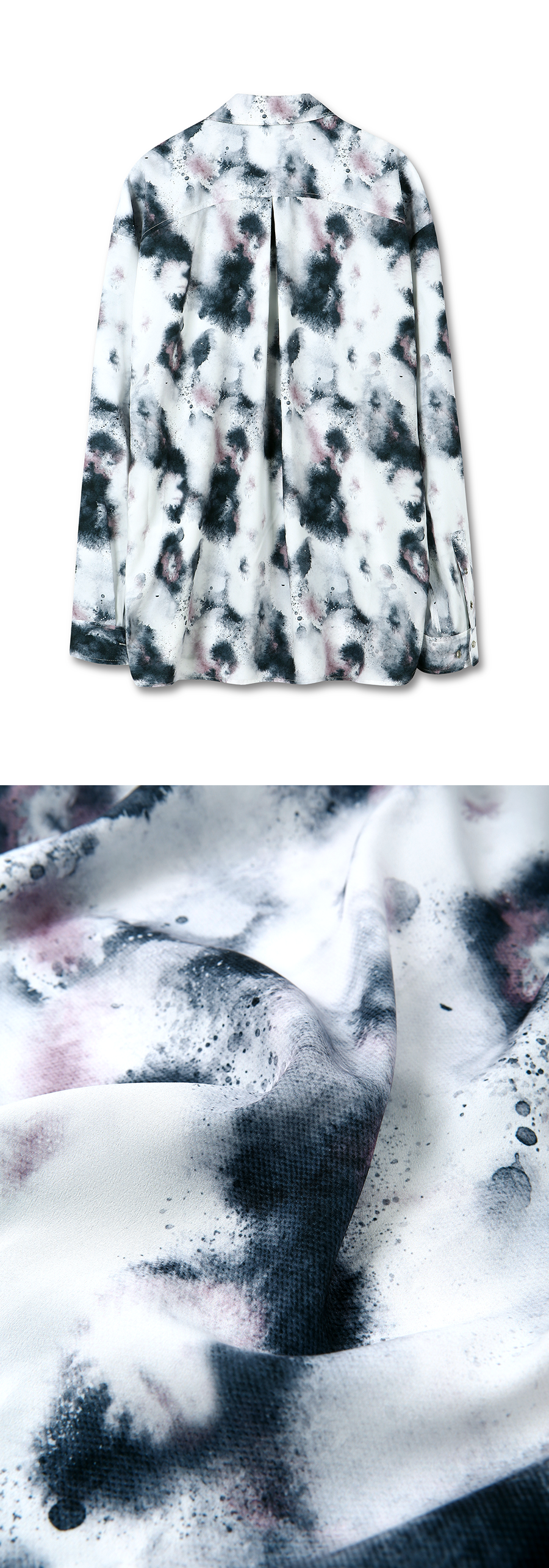 Material : 160g/sqm Polyester 100% Colour : White Black Pink - 전체 DTP 페브릭 - 매끄럽고 은은한 패턴의 소재 - 은은한 반광 소재의 11mm 버튼 - 와이드 카라에 아일렛 디테일 작업 - 라운드 요크에 리버스 주름 - 사이드심에 턱 디테일 작업 - 소매 커프스에 아일렛 디테일 작업