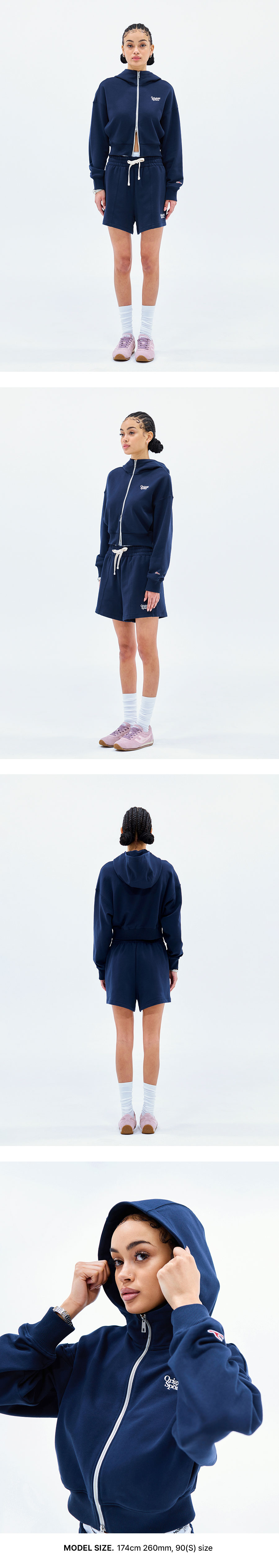 프로-스펙스 우먼 투웨이 지퍼 포인트 후드 다크 네이비