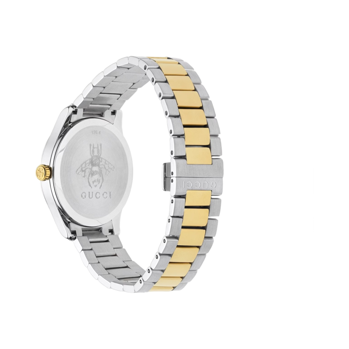 구찌 G-타임리스 쿼츠 38mm 스틸 옐로우 골드 PVD 실버