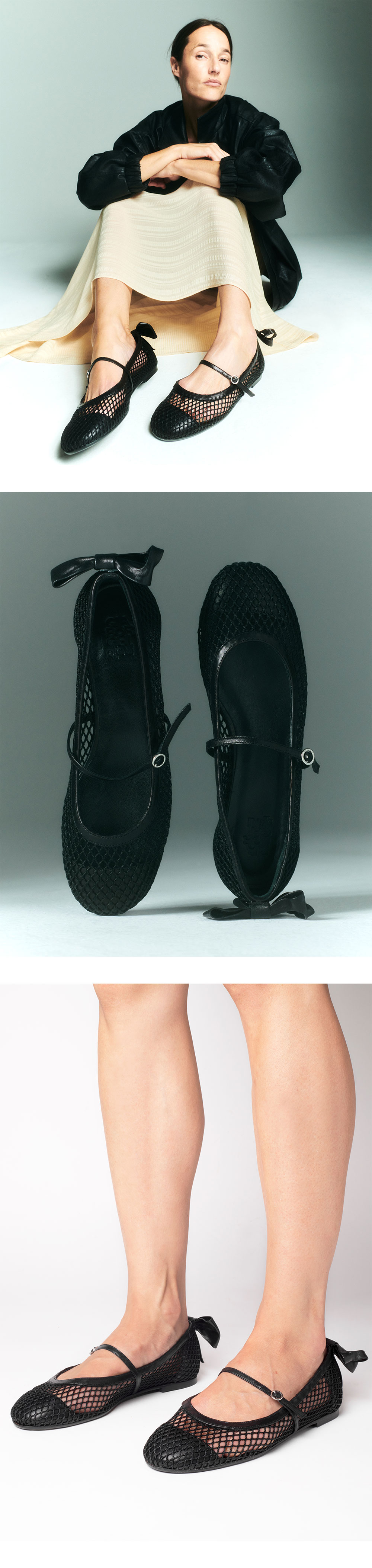 더가먼츠 x 지아보르기니 우먼 그레테 메쉬는 리본 디테일의 메쉬 발레리나 슈즈 쉐입이 특징입니다. - 라운드 토 - 버클 스트랩 - 리본 디테일 - 플랫 아웃솔 - 메쉬