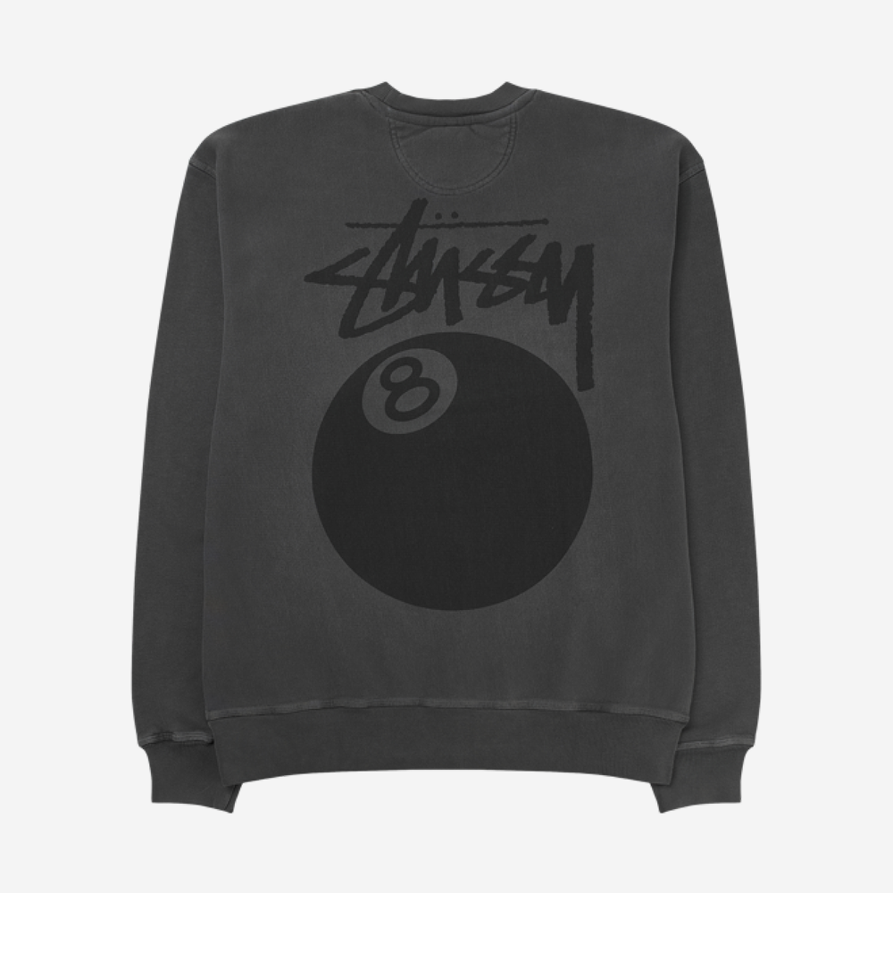 Stussy 8 Ball Crew Pigment Dyed Black