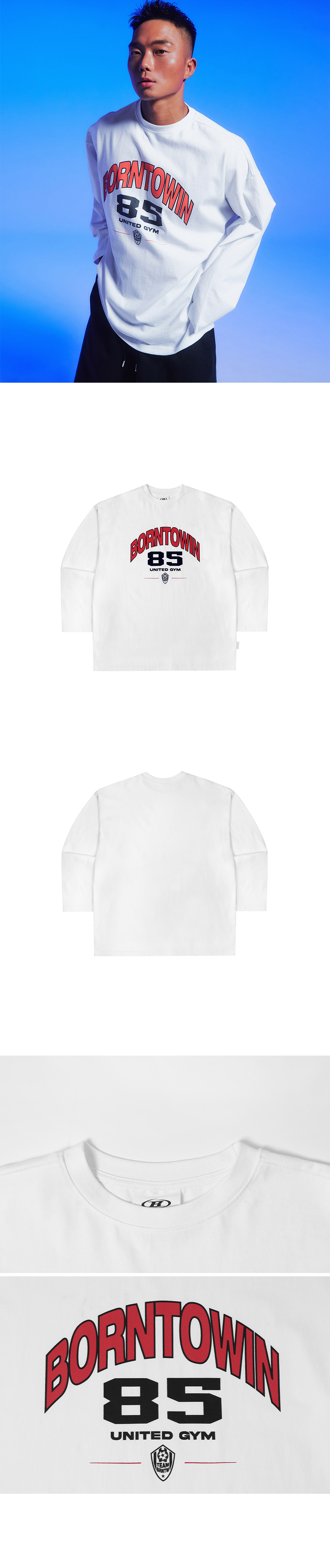[DETAILS] * 85 오버사이즈 핏 롱슬리브 - 텐타덤블 가공 16수 원단 - 오버사이즈 핏 - 로고 레터링 프린팅 - 측면 장식 실리콘 와펜 Material : Cotton 100% Fitting : TJ 2 Size, 172cm, 74kg DB 1 Size, 171cm, 57kg
