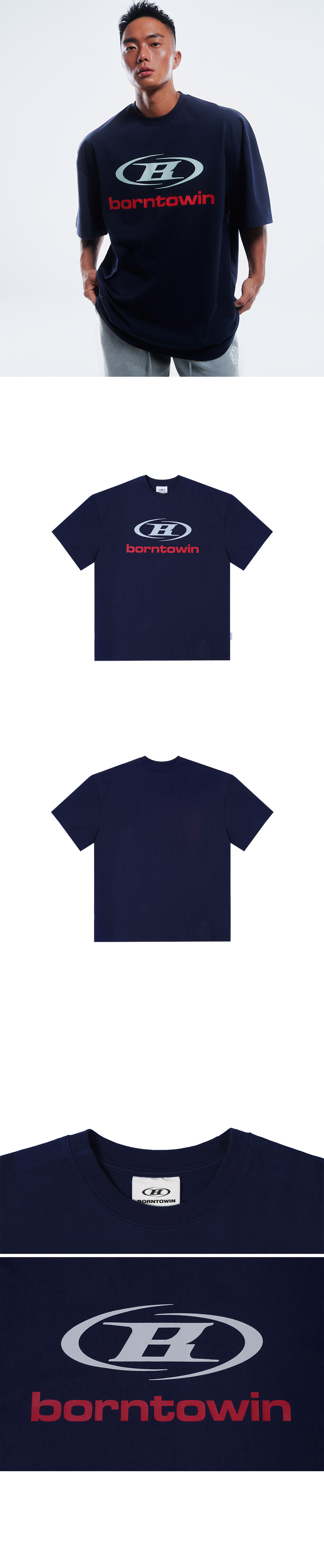 [DETAILS] * 심볼 B 로고 티셔츠 - 텐타/덤블워싱 16수 싱글원단 - B 심볼 로고 프린팅 - 측면 장식 실리콘 와펜 - 오버사이즈 핏 Material : Cotton 100% Fitting : 2 Size, 172cm, 74kg