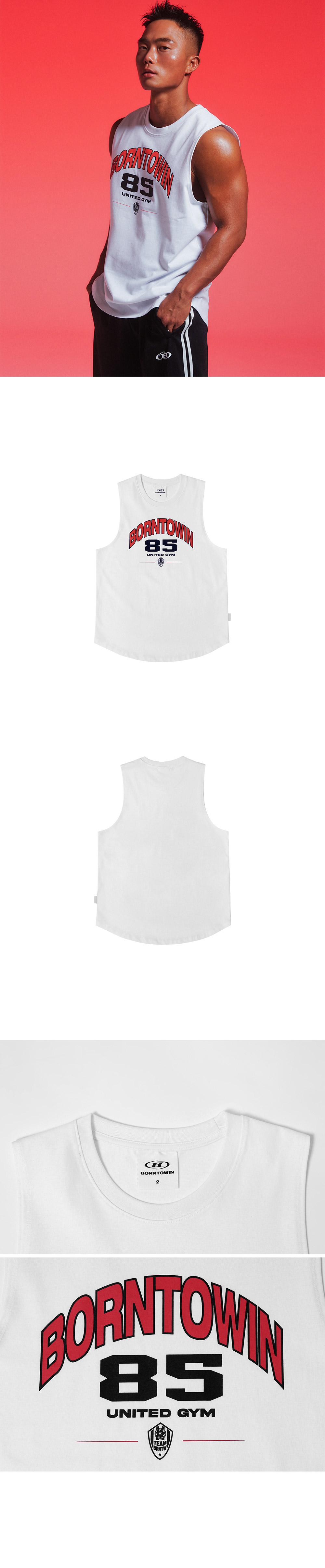 [DETAILS] * 85 GYM 컴포트핏 슬리브리스 - 통기성 좋은 면폴리 혼방 소재 - 착용감 좋은 컴포트 핏 - 컬러배색 아치형 레터링 포인트 - 측면 시그니처 실리콘 와펜 Material : Cotton 100% Fitting : 2 Size, 172cm, 74kg