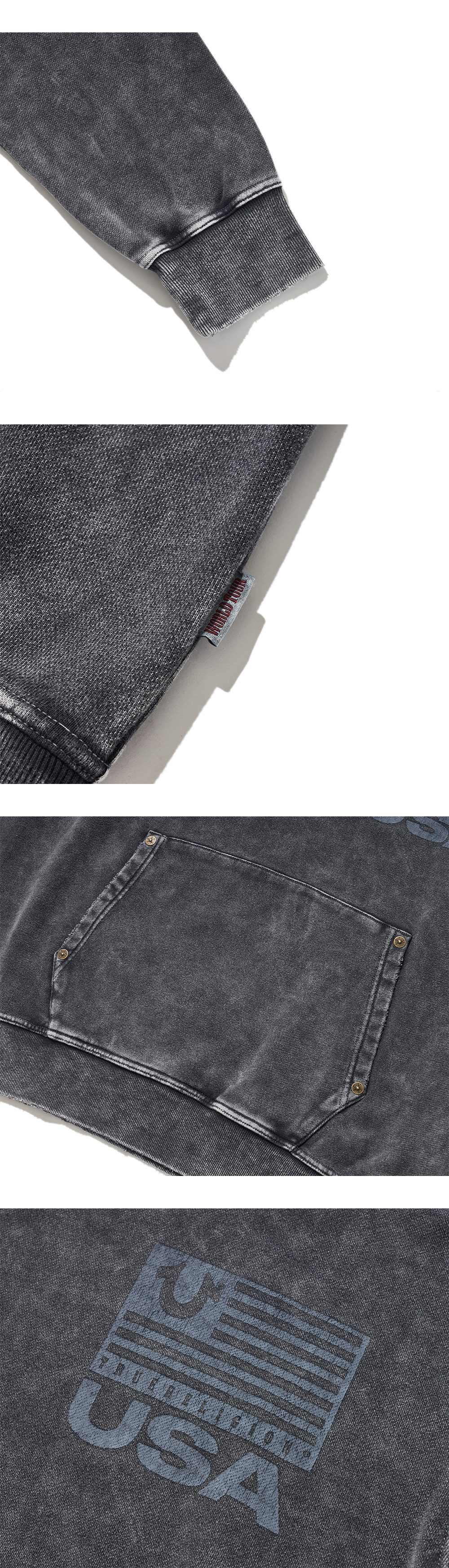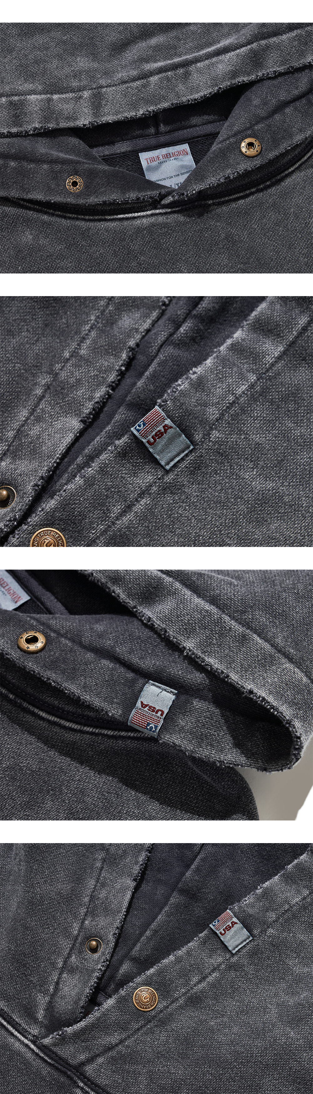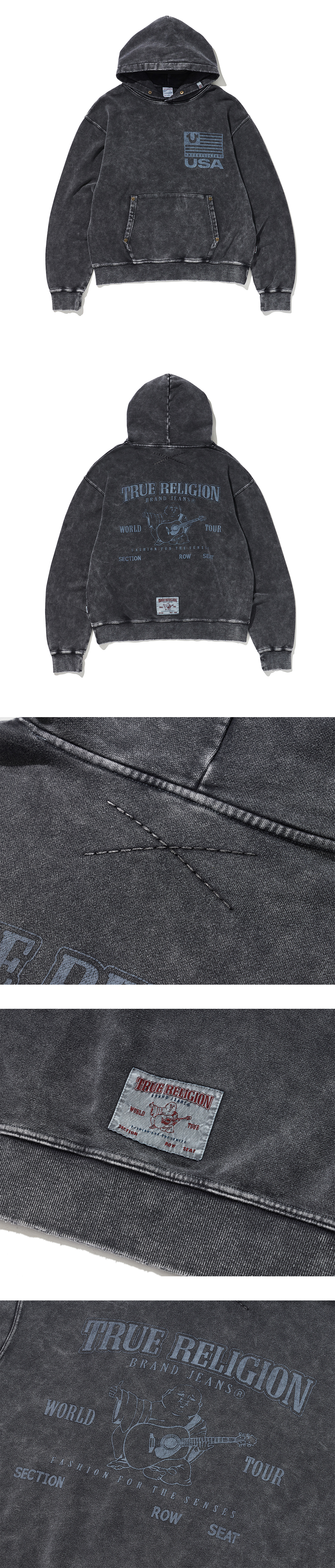 - 빈티지 워싱 후드 - 후드, 소매, 밑단 데미지 디테일 - 캥거루 포켓 입구 TR ORIGINAL 리벳 디테일 - 후드에 트루릴리젼 USA 클립라벨 포인트 - 앞면 트루릴리젼 USA 그래픽 DAMAGED 프린트 - 뒷면 트루릴리젼 O.G 그래픽 DAMAGED 프린트 - 뒷면 트루릴리젼 시그니처 BIG T - X 스티치 - 뒷면 밑단 직조라벨 포인트