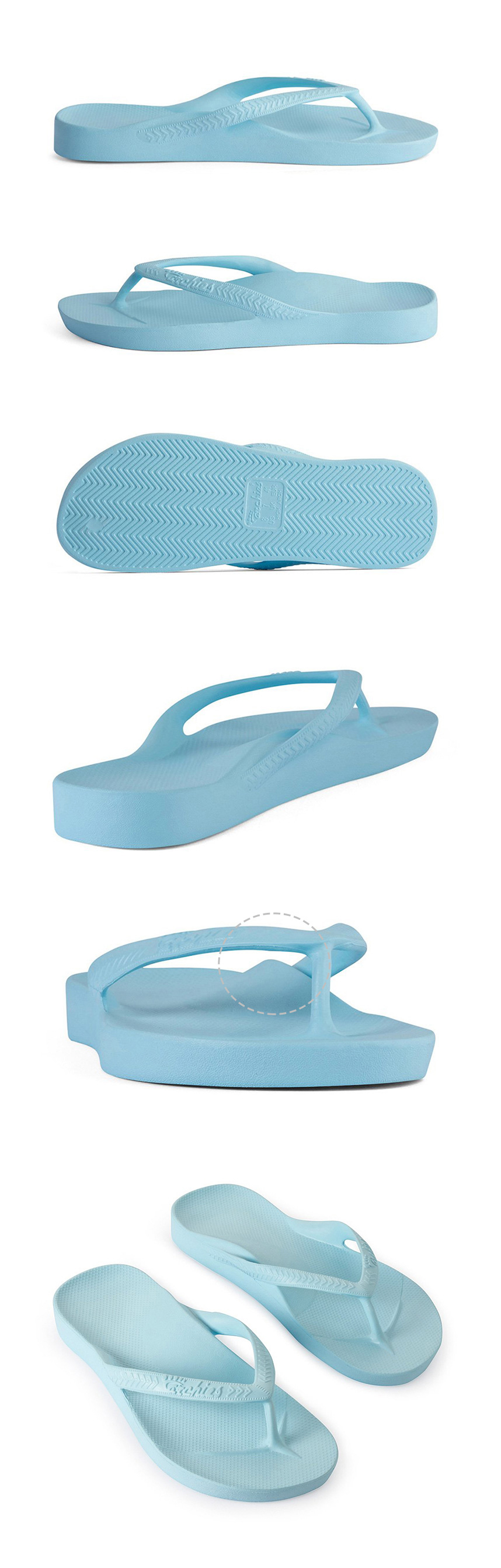 아치스는 발의 모양에 맞게 과학적으로 설계해 편안합니다. 부드러운 폼 소재가 발을 안정적으로 받쳐주고 충격을 분산하죠. 한 번에 구운 일체형이라 스트랩이 빠질 걱정도 없습니다. 발바닥의 굴곡을 고려한 구조,발과 한몸이 되는 일체형 디자인,사뿐하게 걷는 가벼운 무게,부드럽고 내구성이 강한 쿠션, 발가락에 힘 주지 않고 편하게 걷도록 발에 맞춰 편안하게 성형되는 쪼리 실제로 호주의 많은 엘리트 운동선수들과 트레이너들이 운동 이후 리커버리 샌들로 아치스를 추천 합니다.