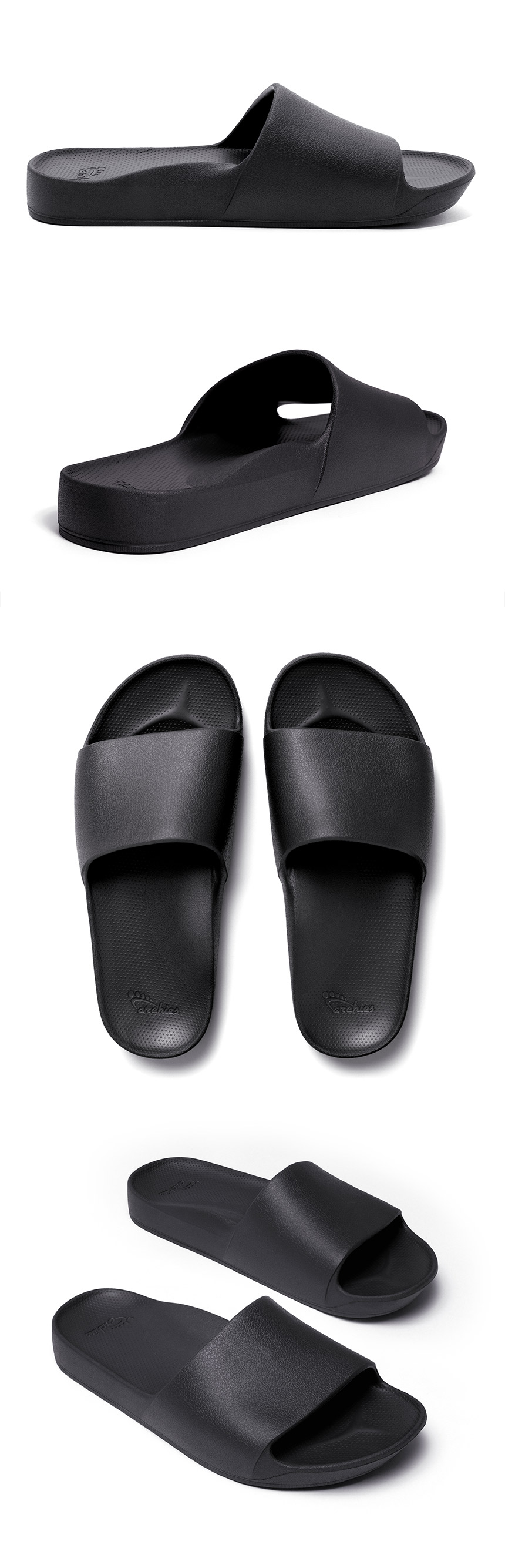 아치스 슬라이드는 리커버리 기능에 초점을 맞춰 부가 디자인적인 요소는 간결하게 설계되었습니다. 발 아치를 받쳐주는 아치스 슬리퍼에 지압 효과는 물론,발의 무너진 밸런스를 바로 잡아주는 효과 까지 경험 하실 수 있습니다.