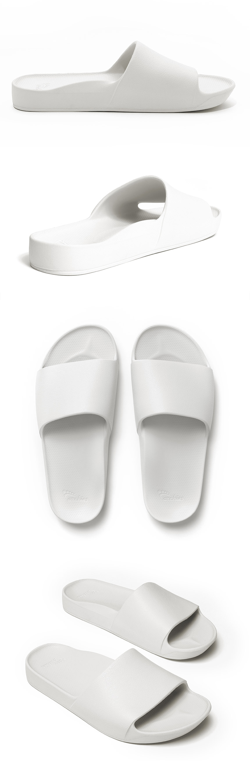 아치스 슬라이드는 리커버리 기능에 초점을 맞춰 부가 디자인적인 요소는 간결하게 설계되었습니다. 발 아치를 받쳐주는 아치스 슬리퍼에 지압 효과는 물론,발의 무너진 밸런스를 바로 잡아주는 효과 까지 경험 하실 수 있습니다.