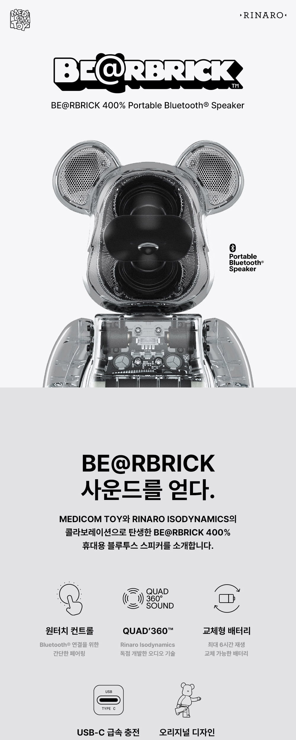 베어브릭 오디오 400% 포터블 블루투스 스피커 블랙