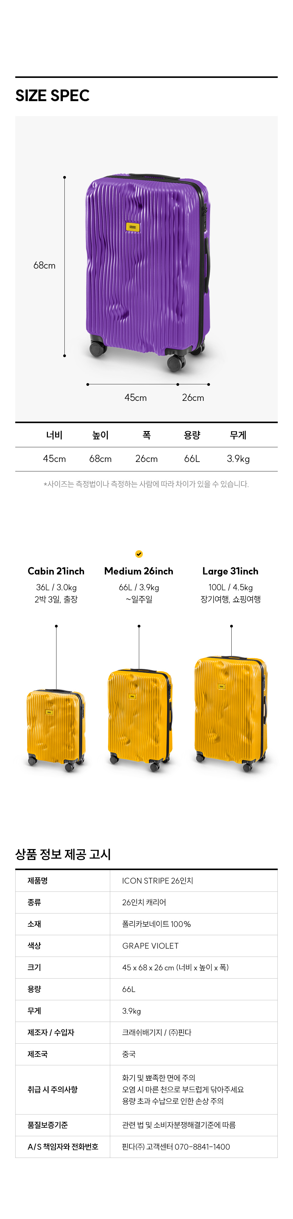 크래쉬배기지 아이콘 스트라이프 26인치 캐리어 그레이프 바이올렛