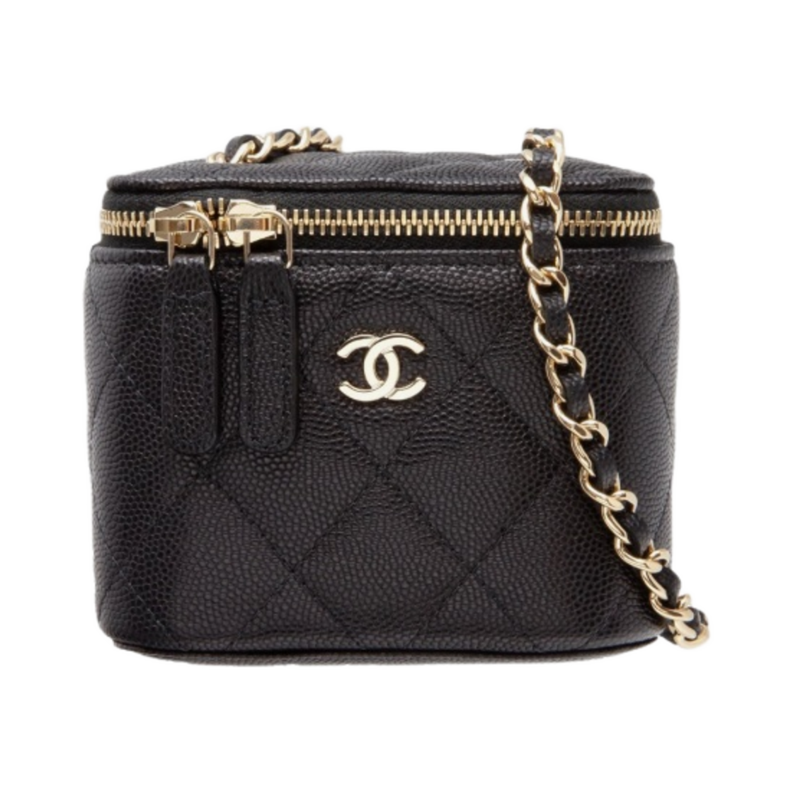 샤넬 클래식 스몰 체인 코스메틱 케이스 그레인드 카프스킨 & 골드 메탈 블랙