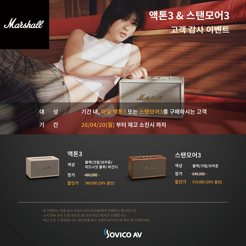 마샬 액톤 3 크림 (소비코 AV 정식 발매 제품)