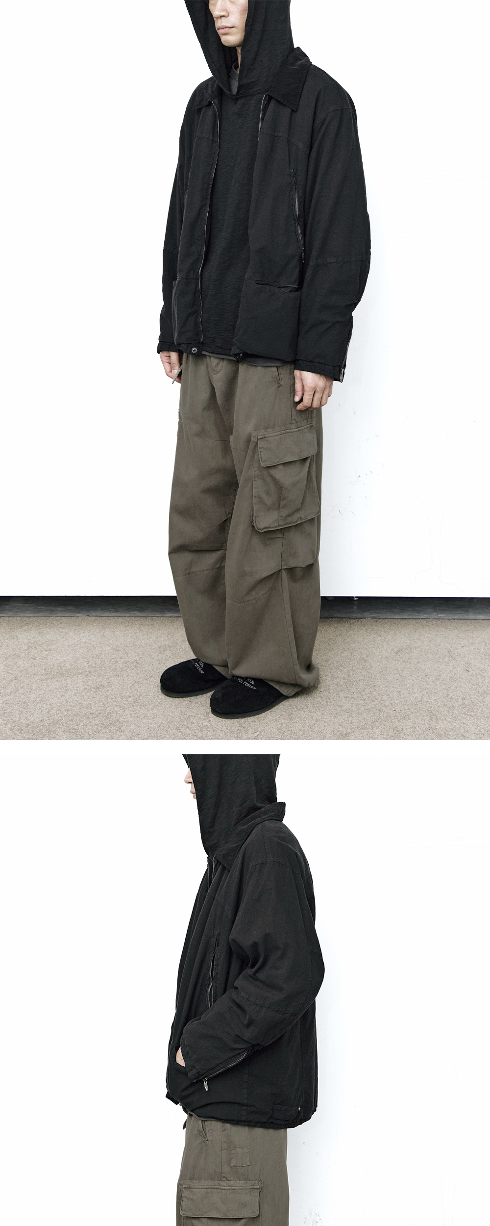 본 제품은 완성 후 후염 가공 진행된 제품으로, 공정 특성상 미세한 개체간 차이 및 제품 내 각 파츠별 워싱감이 부분적으로 상이하게 나타날 수 있습니다.