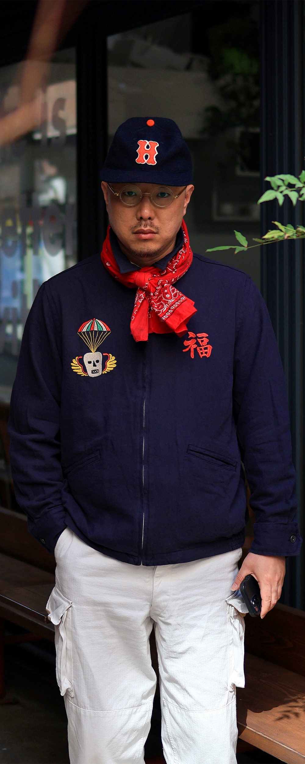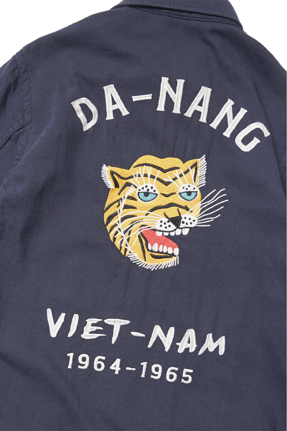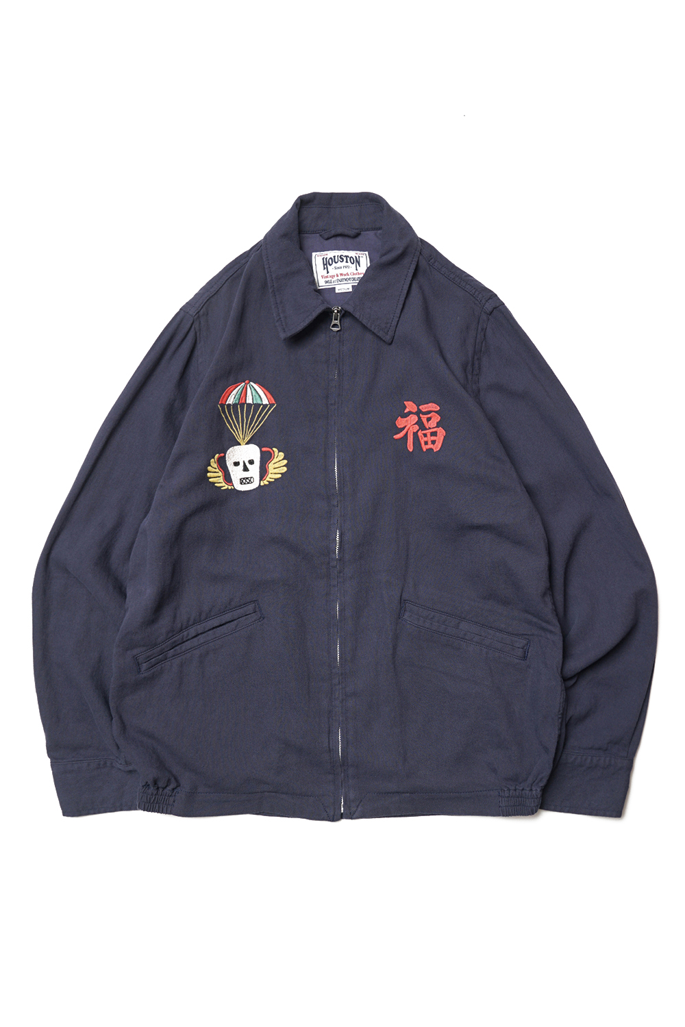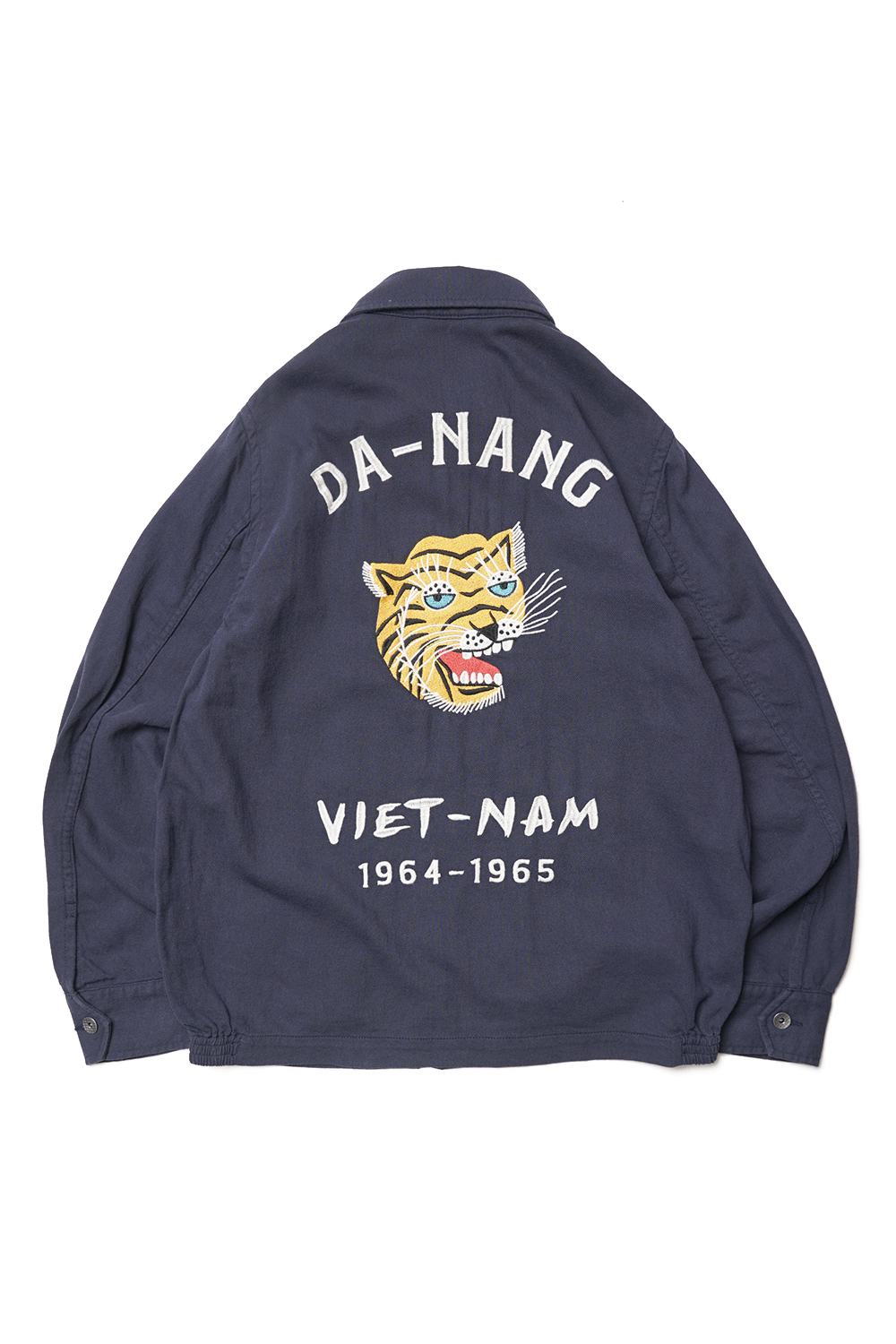 Houston Japan 51352 Cotton Linene Vietnam Jacket (Tiger) - Navy 탄력감있고 통풍성이 뛰어난 면마 트윌을 사용한 베트남 자켓입니다. 프론트는 집업타입이며, 양쪽으로 공수부대 마크와 한자 '福'의 자수가 배치되어 있습니다. 소매는 싱글 버튼 사양이며, 양 사이드에는 포켓이 있습니다. 밑단 부분에는 신축성있는 고무사양으로 제작하여 여유로운 실루엣이 특징입니다. 후면에는 호랑이 자수가 디자인 되어있습니다.