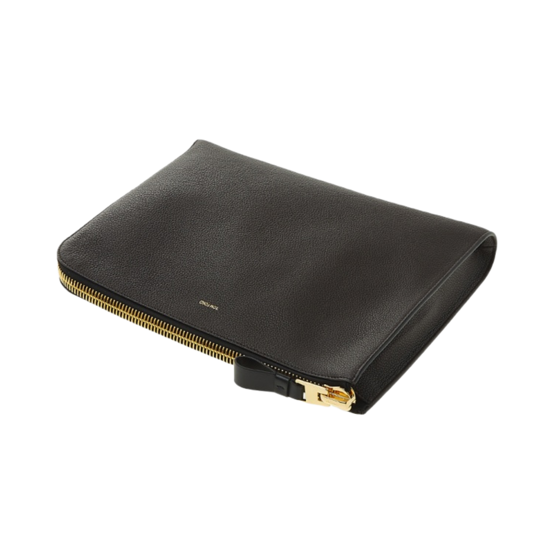 Tom Ford Soft Grain Leather Zip Portfolio Chocolate Black
