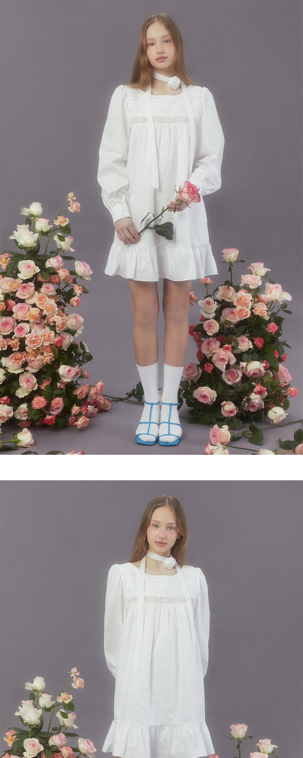 Margarin fingers 24 spring 로지 스카프 원피스입니다. - 은은한 광택이 도는 새틴무드의 면 소재 원피스 - 보트넥 스타일의 미니 원피스 - 함께 착용 가능한 스카프, 로즈 코사지와 세트 -가슴 상부와 커프스 셔링 디테일 - 싸개단추 - 비침 방지 안감 사용 - 사이드 지퍼로 편안한 착용 가능 * 장미 코사지는 핸드메이드로 제작되기 때문에, 크기나 모양이 제품마다 약간씩 상이할 수 있습니다. 이는 불량이 아니니 구매 시 참고 부탁드립니다.