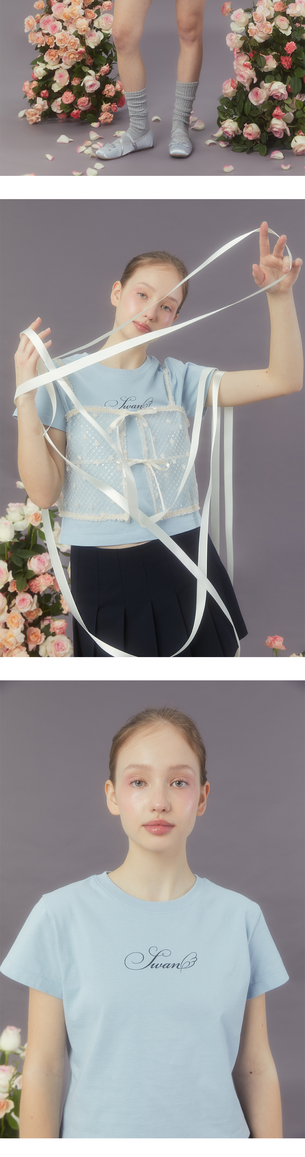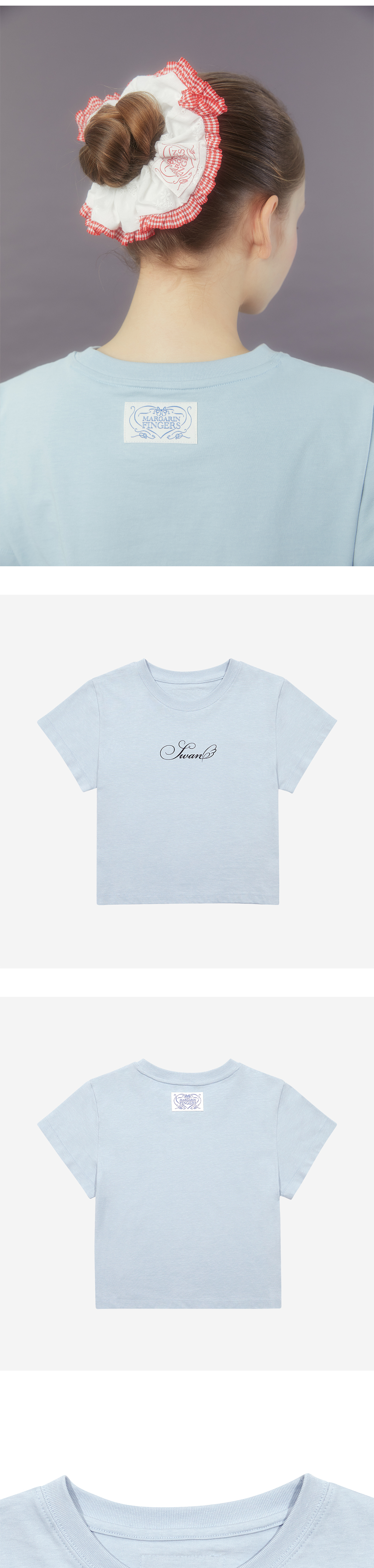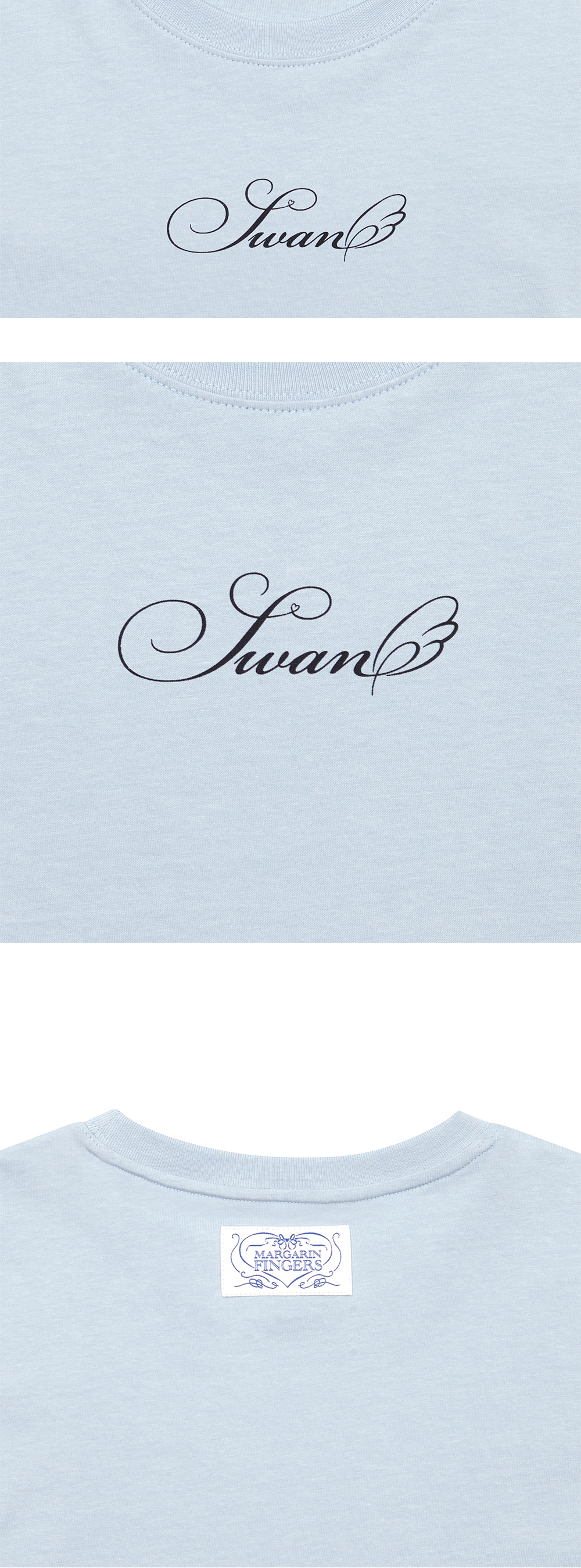 Margarin fingers 24 spring 스완 레터링 티셔츠입니다. - 20수 면 소재의 슬림핏 티셔츠 - 톤 온 톤 컬러의 시즌 시그니처 레터링 그래픽 프린트 - 뒤판 포인트 라벨