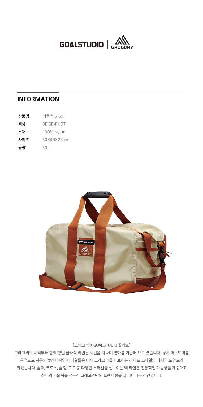 그레고리 골스튜디오 콜라보 더플백 S 베이지 러스트