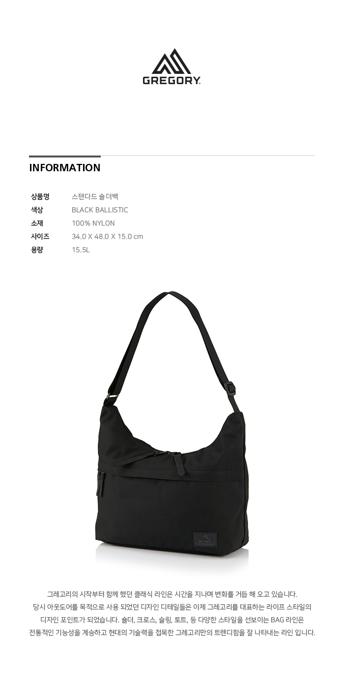 그레고리 스탠다드 숄더백 블랙 발리스틱