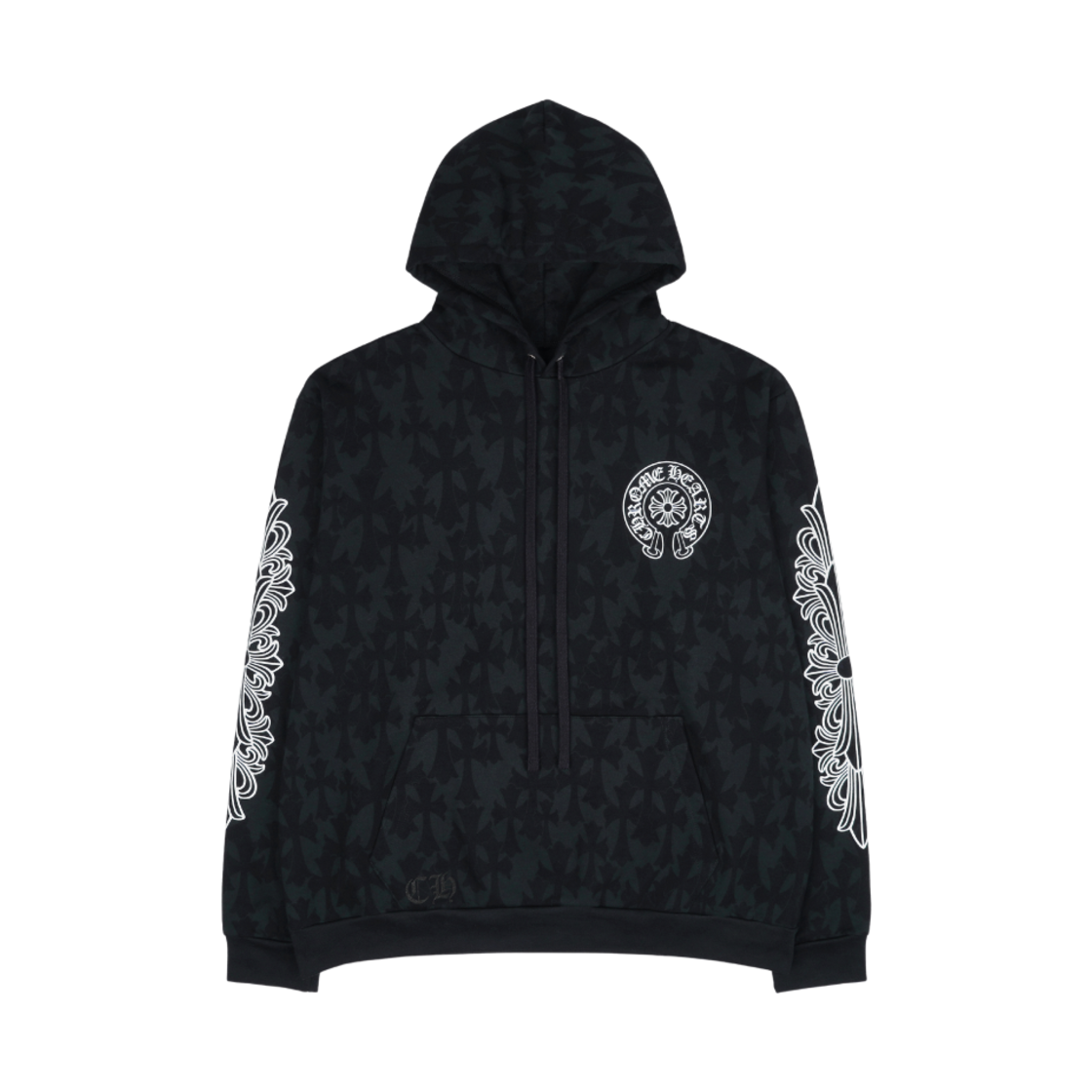 크롬하츠 세메터리 크로스 프린트 풀오버 후드 블랙