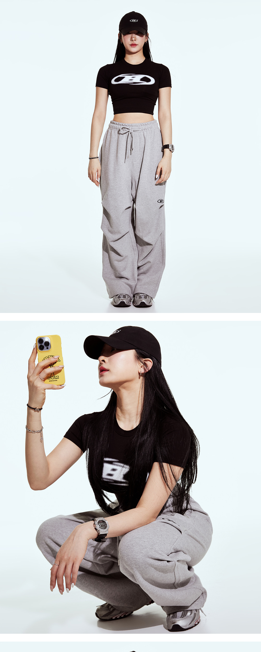 본투윈 블러 로고 크롭 탑 블랙