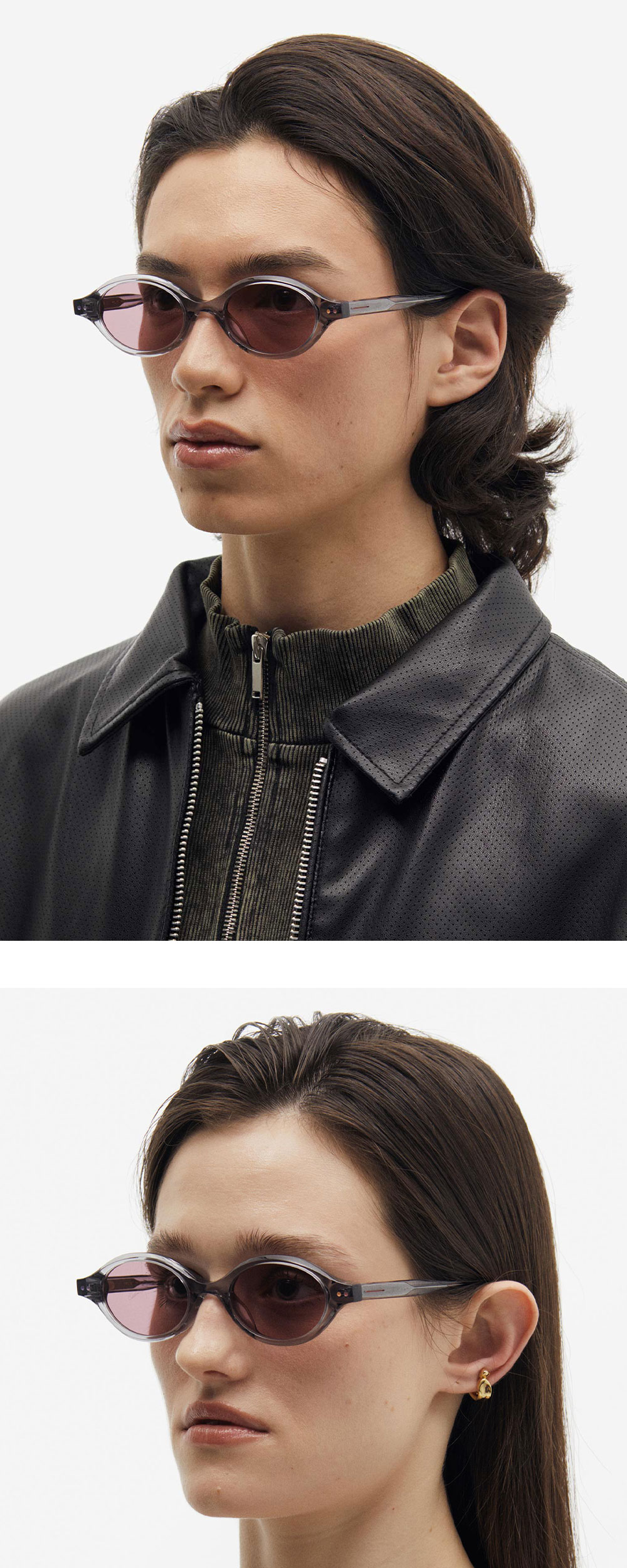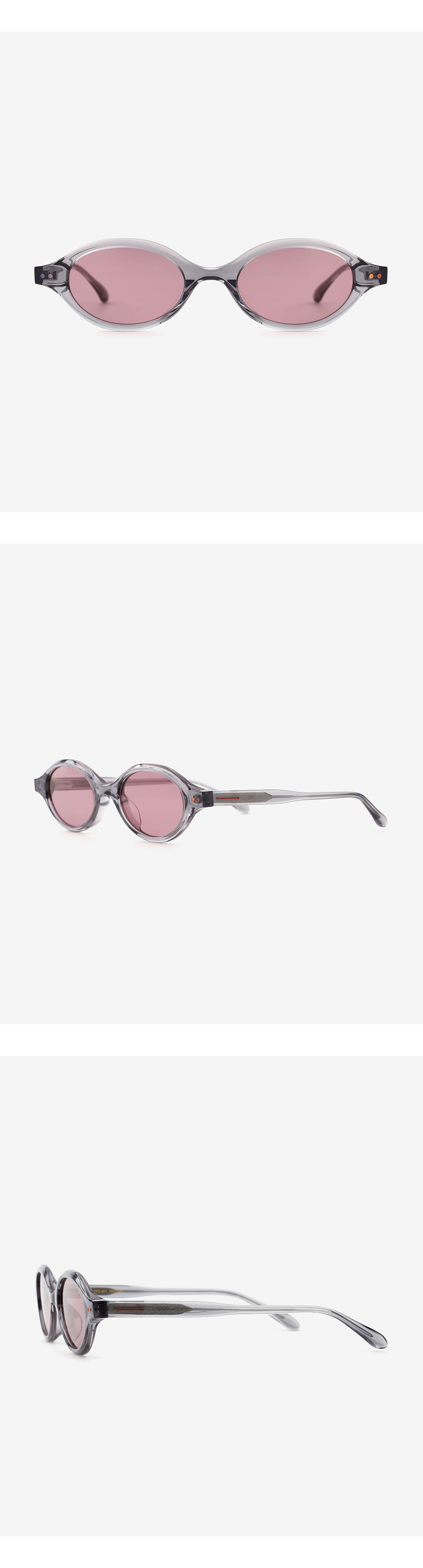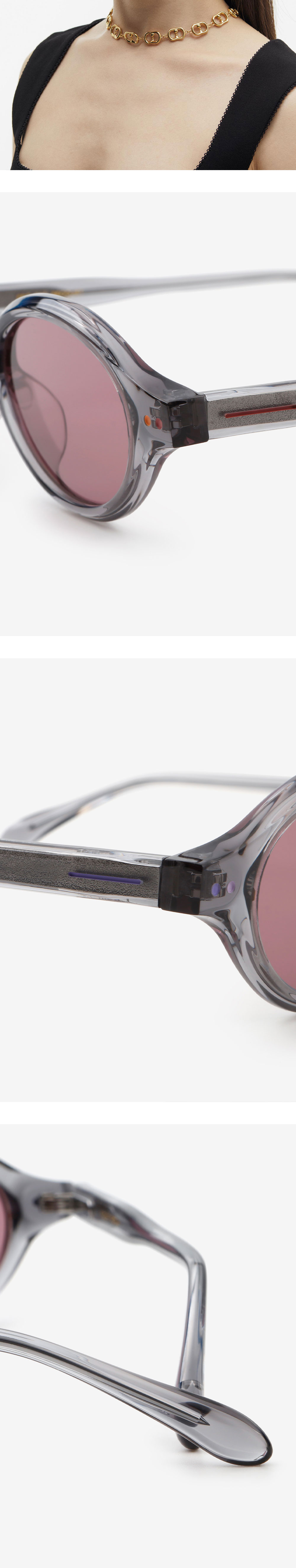 커다란 물결의 유기적인 라인을 간결한 실루엣으로 완성한 오벌 아세테이트 선글라스. 크고 작은 곡선들의 조합 안에 네 가지 다른 컬러 에나멜로 위트를 가미해 유쾌한 무드를 완성했습니다.