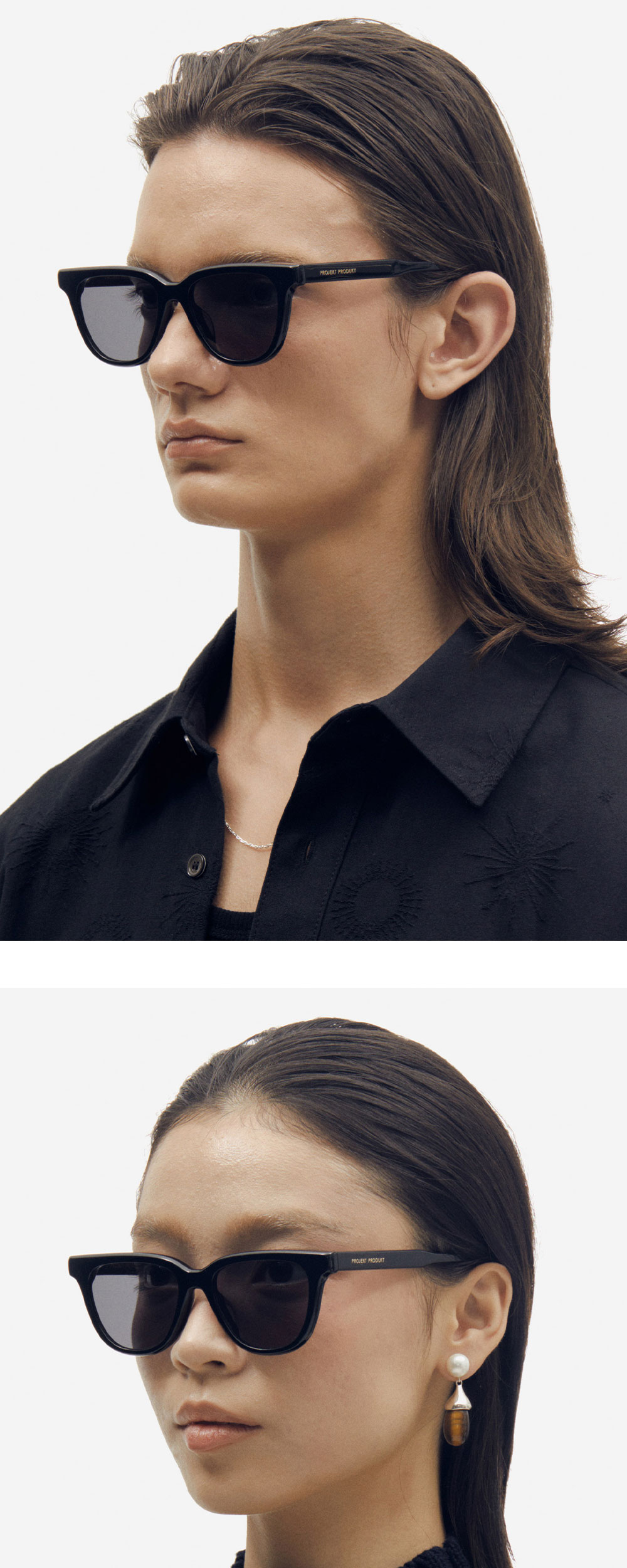 고전적인 안구 형태에 프로젝트 프로덕트의 디자인 철학을 더해 완성한 아세테이트 선글라스. 브릿지부터 템플의 로고 장식을 지나 팁까지 부드럽게 이어지는 Seamless 디자인으로 완성도 높은 모던함을 표현했습니다.