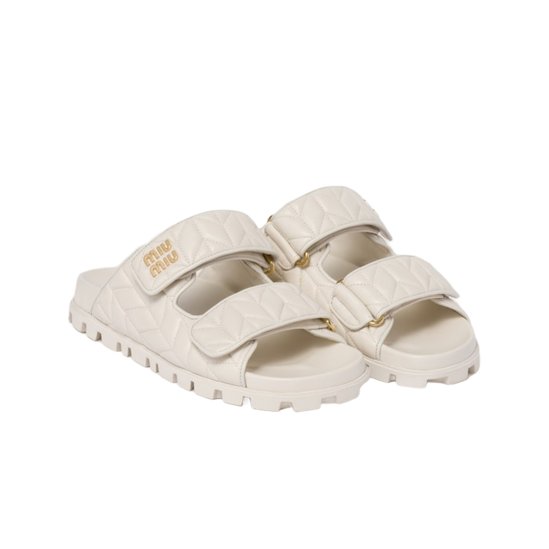 (W) Miu Miu Matelasse Nappa Leather Slides White
