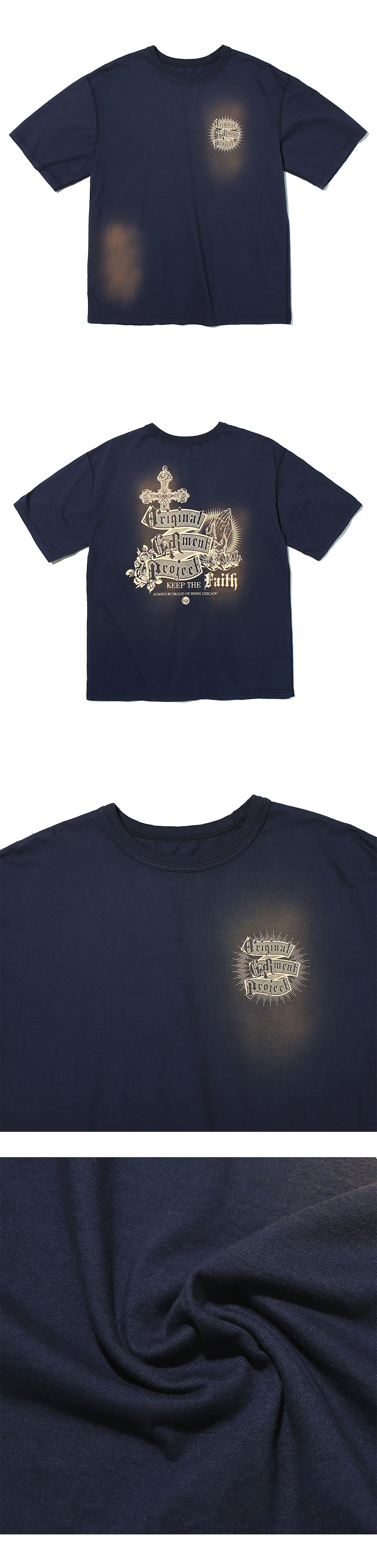 오가프 가먼트 워시드 레터링 그래픽 티셔츠 네이비