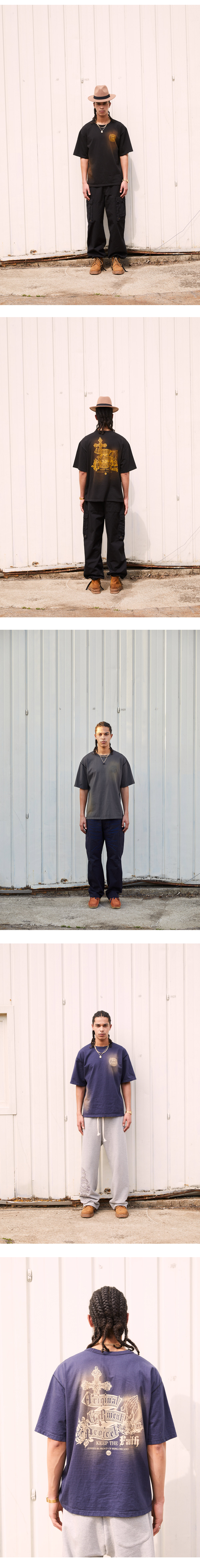 봉제 후 워싱을 하여 빈티지한 컬러감이 특징이며, 빈티지 나염이 매력적인 상품입니다. - cotton 100%