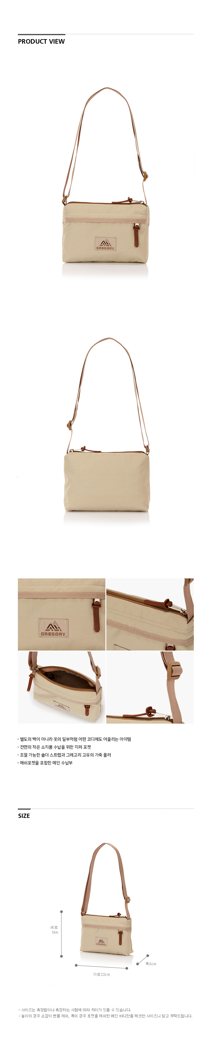 그레고리 엔벨롭 숄더백 디져트 샌드