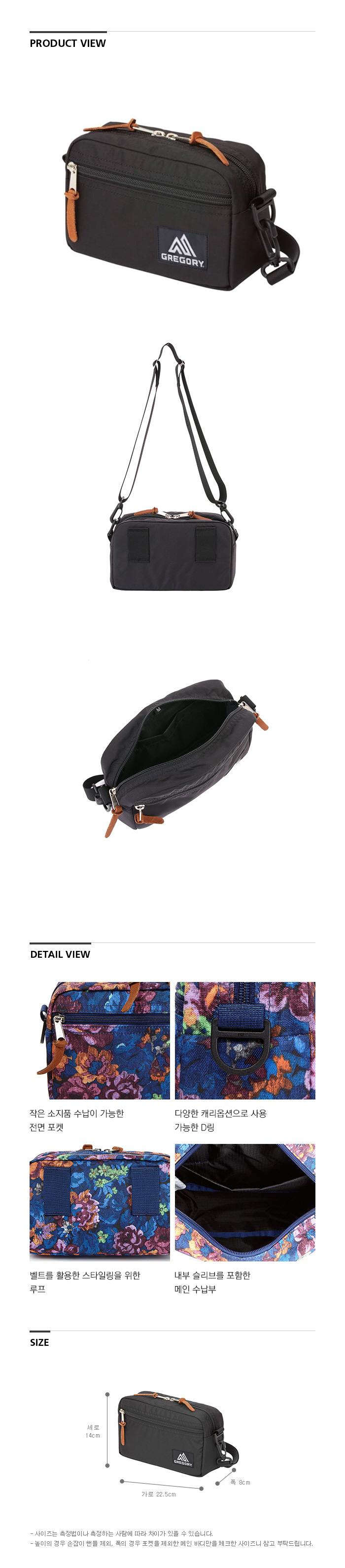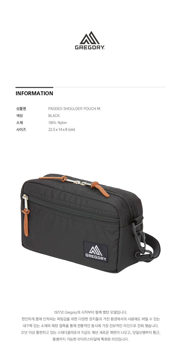그레고리 패디드 숄더 파우치 M 블랙