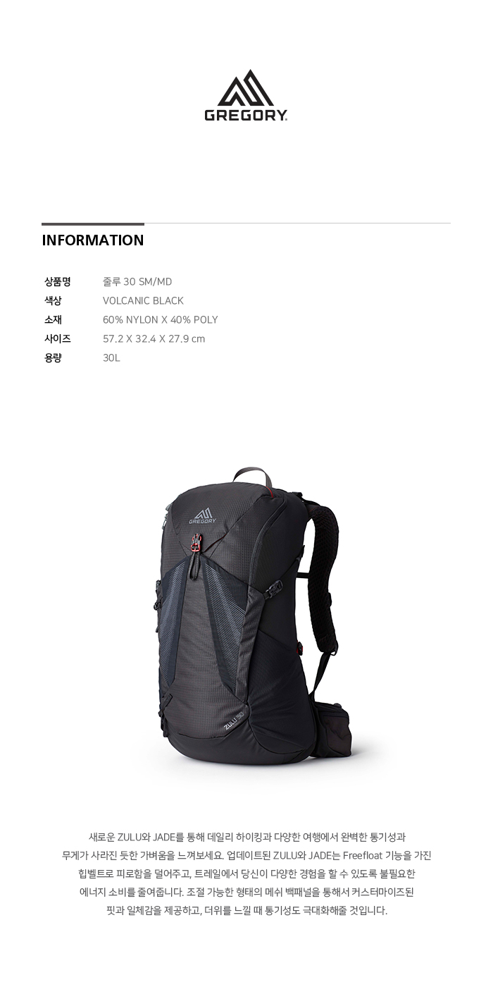 그레고리 줄루30 SM MD 볼캐닉 블랙
