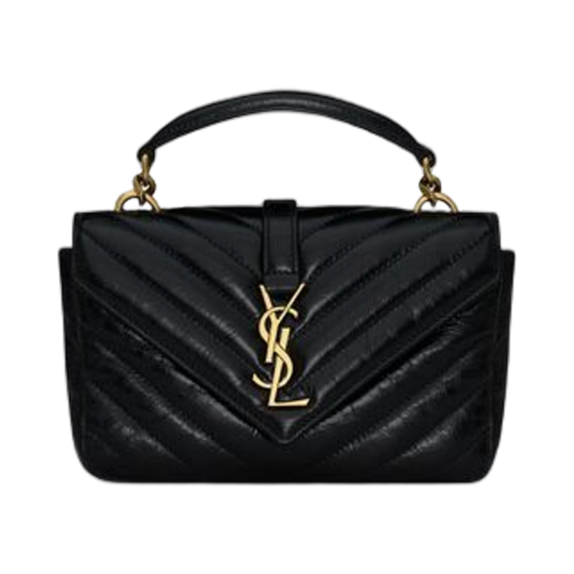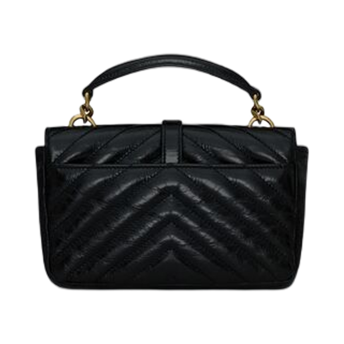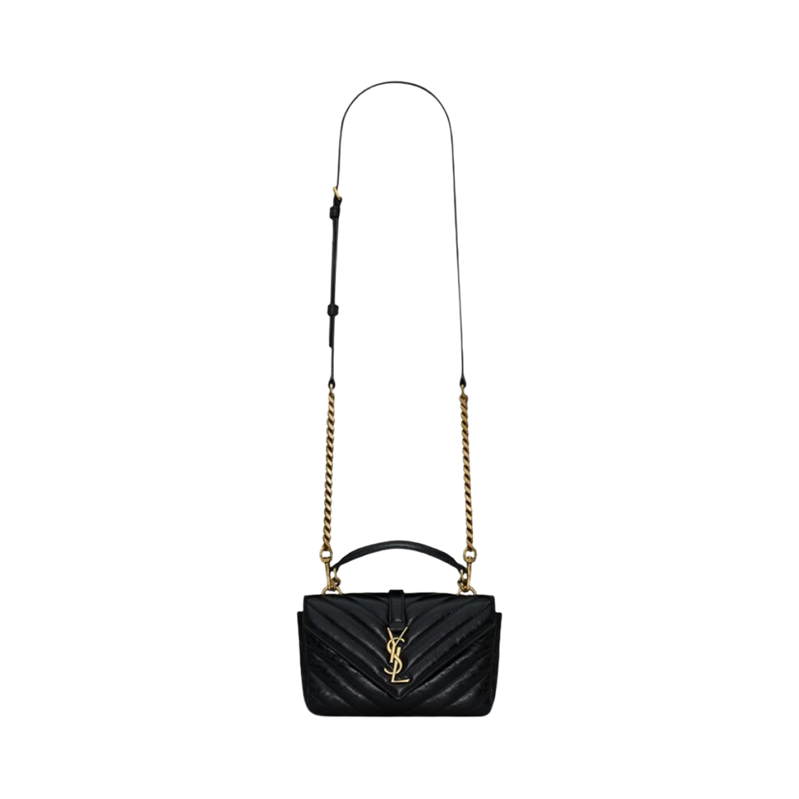 Saint Laurent College Mini Chain Bag in Shiny Crackled Leather Black