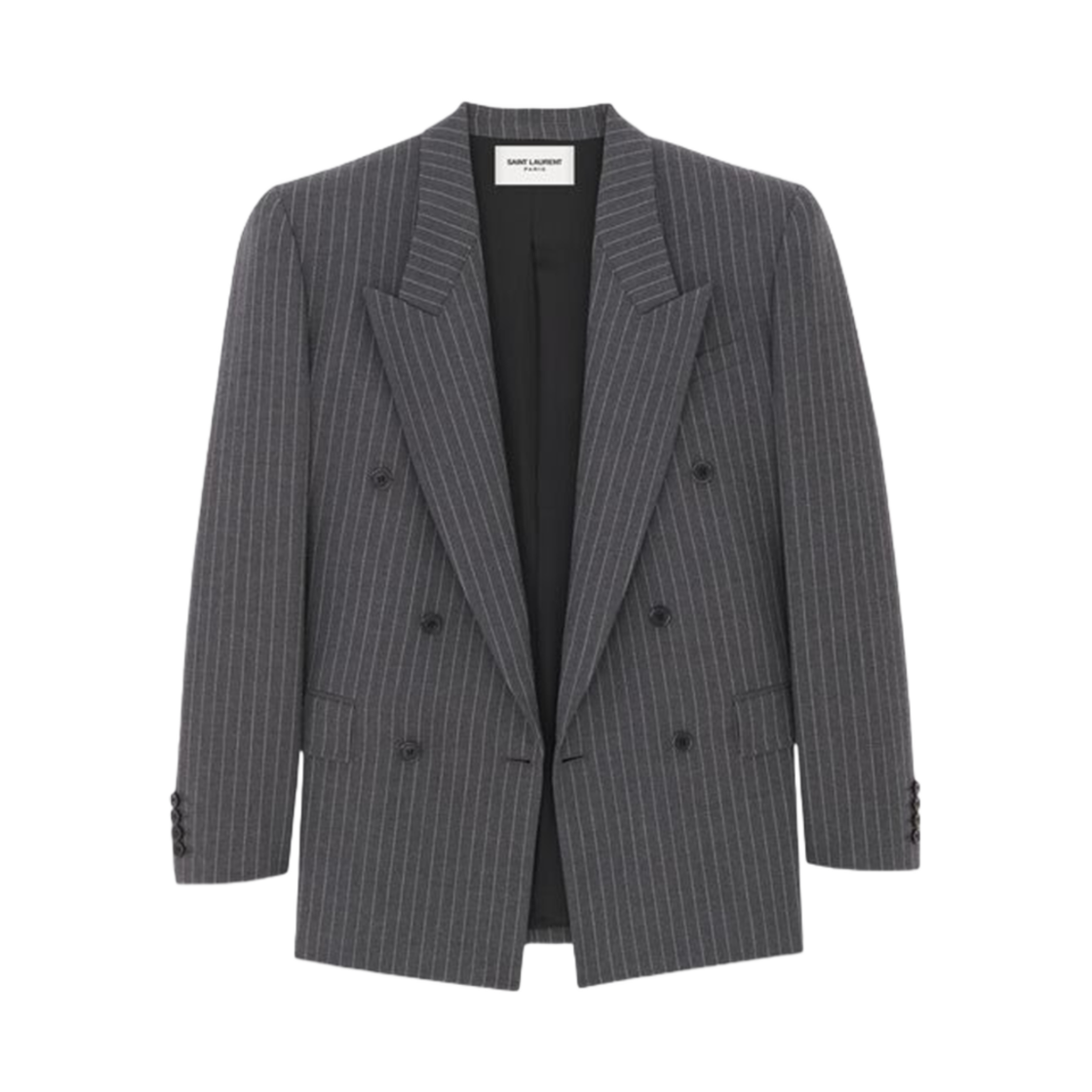 (W) 생로랑 오버사이즈 자켓 스트라이프 울 플란넬 앤트러사이트 끄레