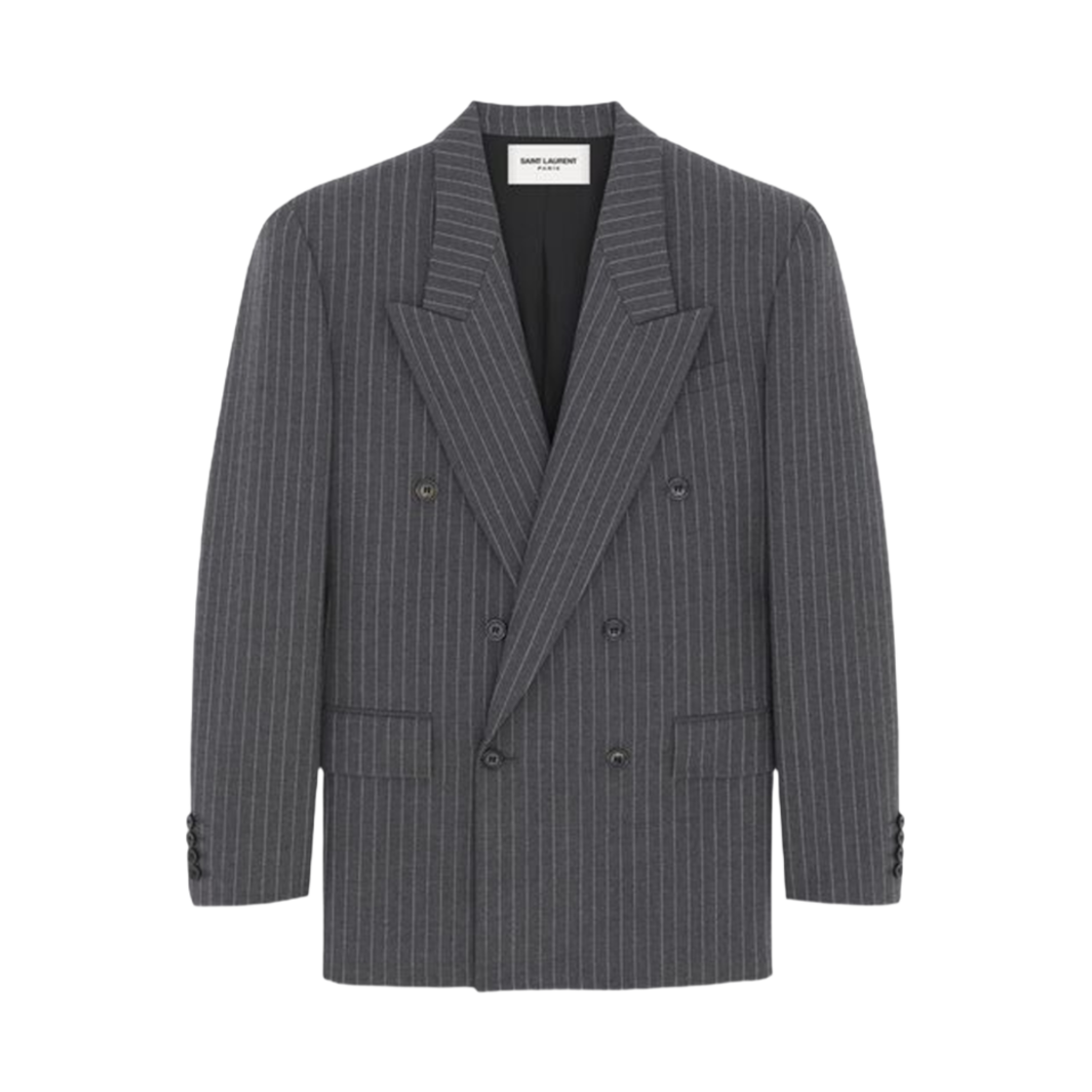 (W) Saint Laurent Oversized Jacket In Striped Wool Flannel Anthracite Craie