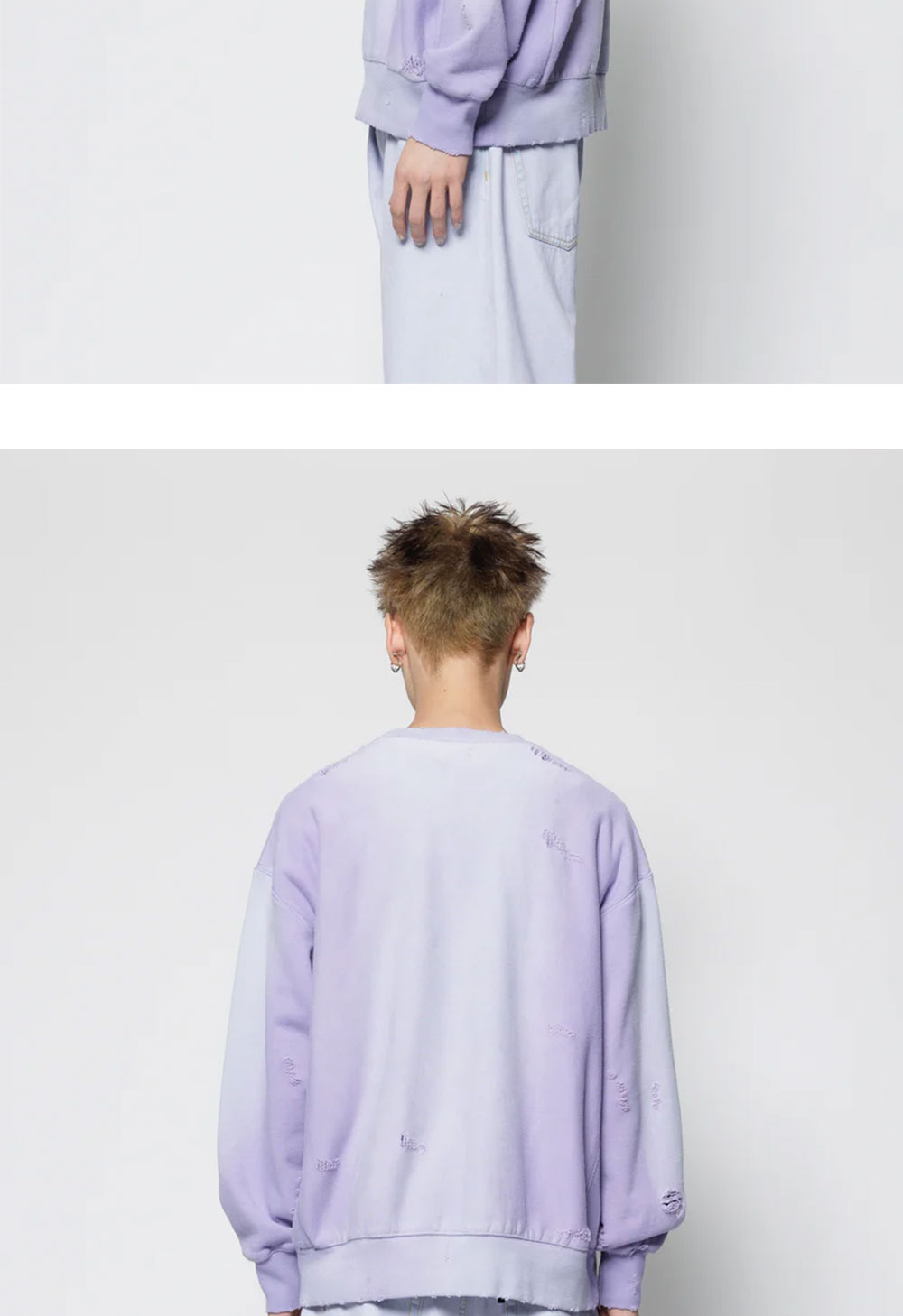- 리버스 웨이브 디자인의 스웨트셔츠 - 15oz의 빈티지 원단 - 피그먼트 염색 - 파우더 가공으로 빛바랜 듯한 느낌을 내고, 몸통에 데미지 가공을 가하여 빈티지 느낌 재현 - 가슴 부분에 크랙 프린트 - 쇼트 기장의 와이드 실루엣