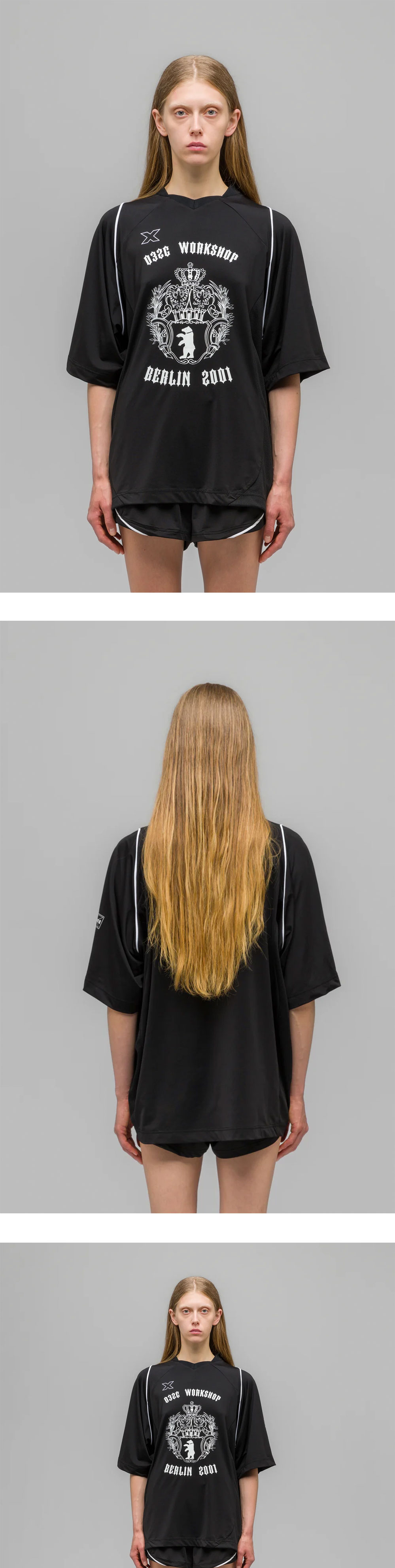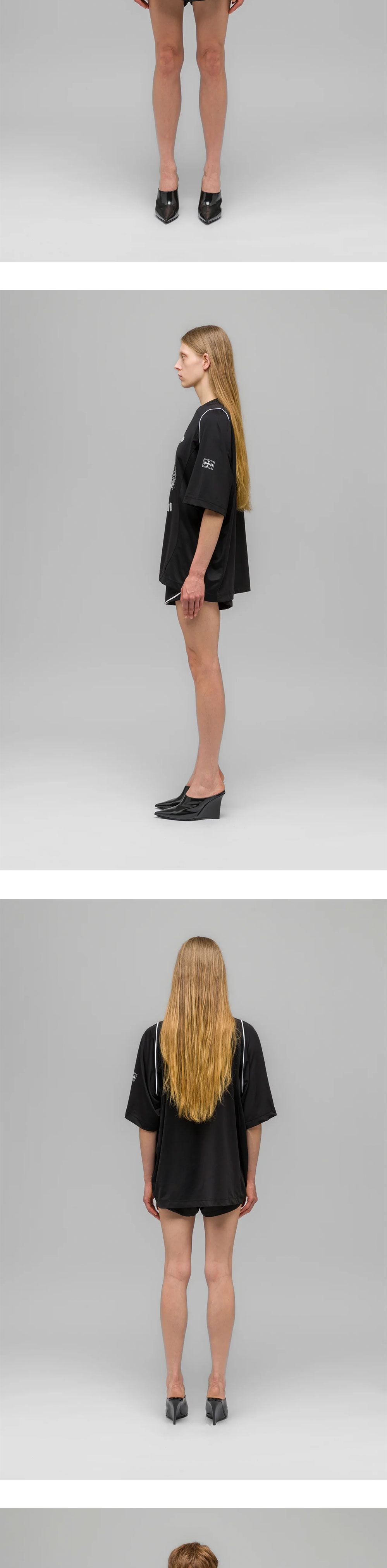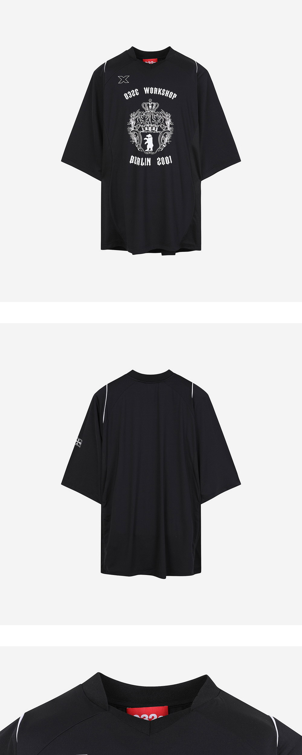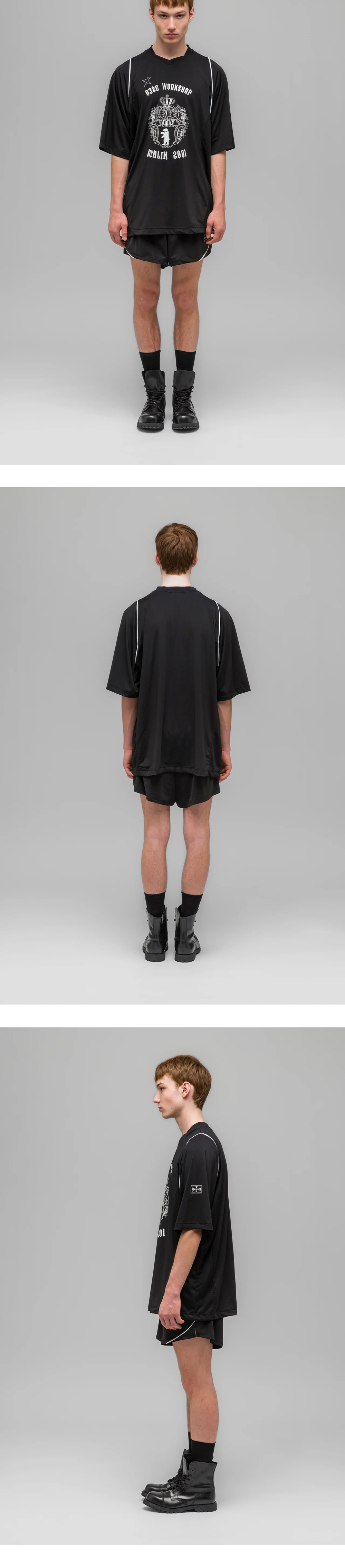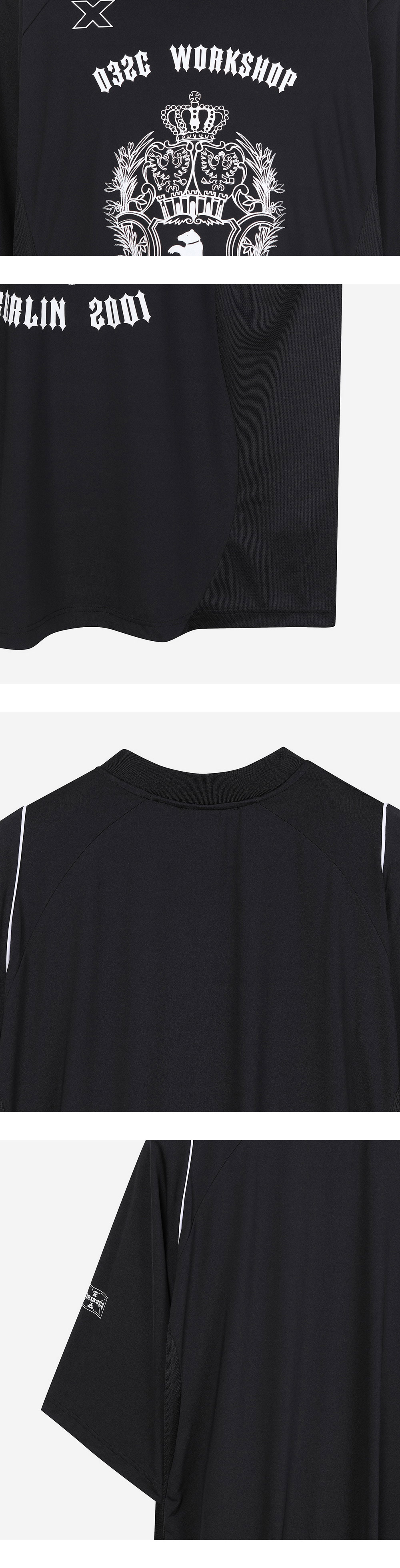 메쉬 소재와 파이핑 인서트가 스포티한 느낌을 더하는 숏슬리브 티셔츠입니다. - 032c 24SS 시즈널 프린트 - 오버사이즈 핏의 액티브 웨어