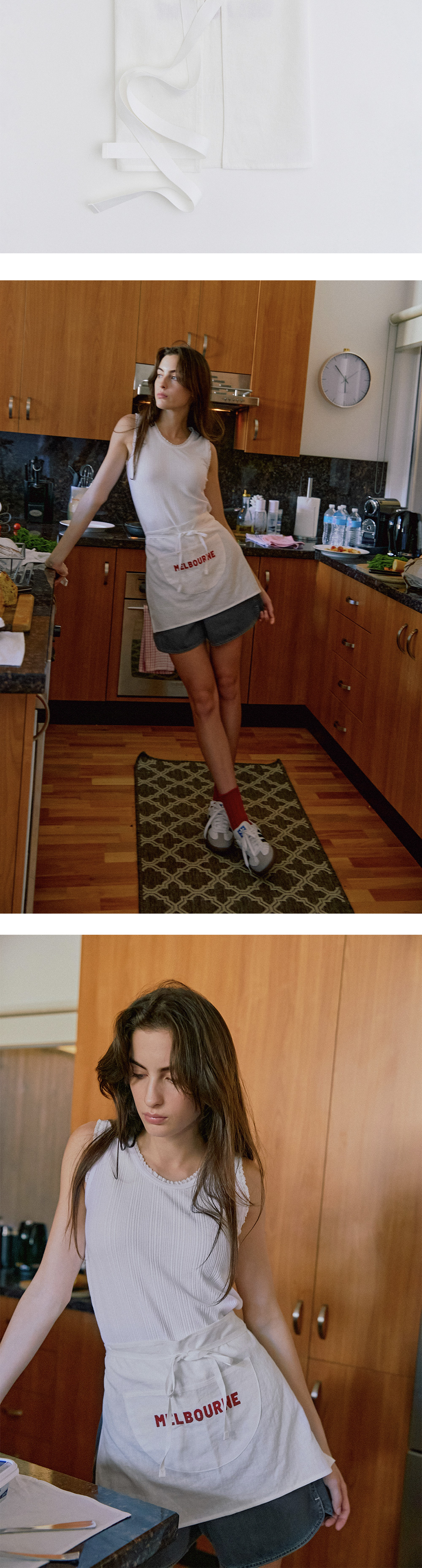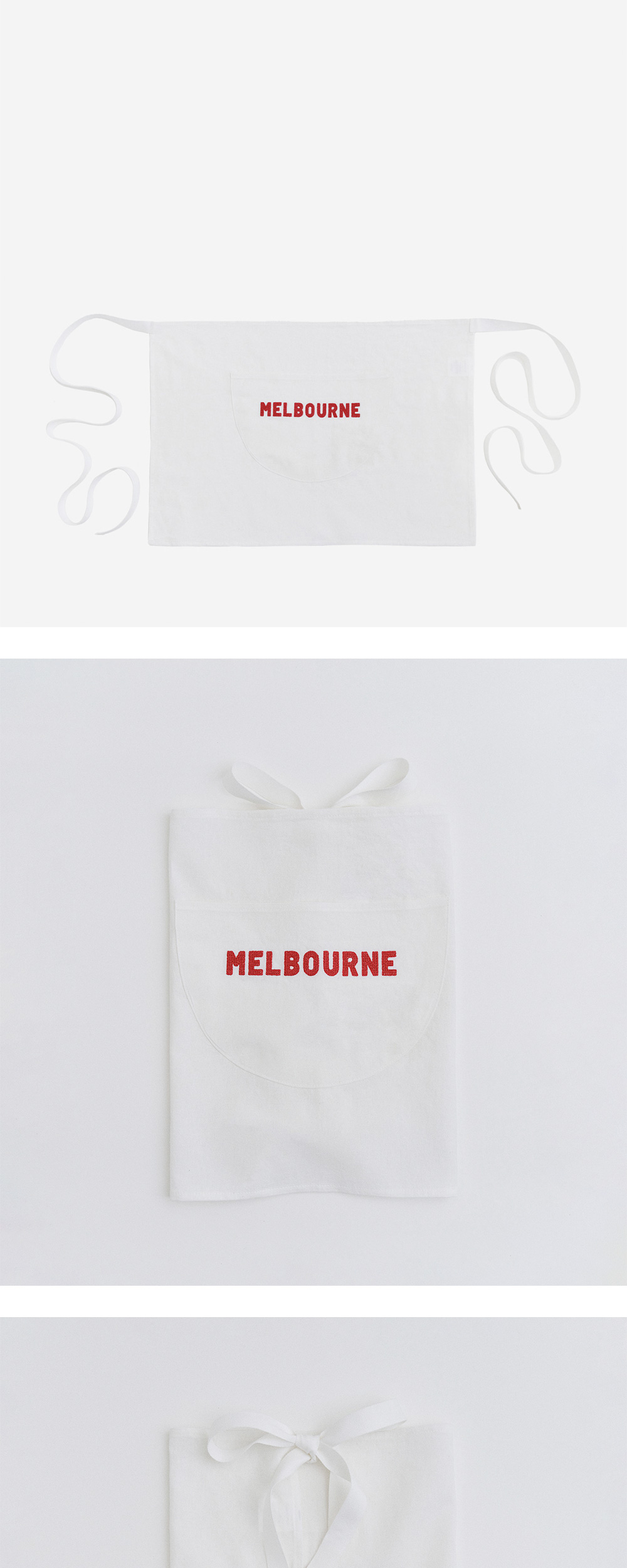 AND YOU x VEGETABLE FLOWER STUDIO 커피와 브런치의 도시 'MELBOURNE' 자수가 담겨있는 롱버전의 에이프런입니다. 클래식룩을 지향하는 브랜드 AND YOU 와의 첫번째 콜라보 제품입니다. "원단 특성상 세탁 후 수축 현상이 있을 수 있으며, 보풀이나 잡사가 섞여있을 수 있습니다. 이는 불량 사유가 아니 오니 양해 부탁드립니다."