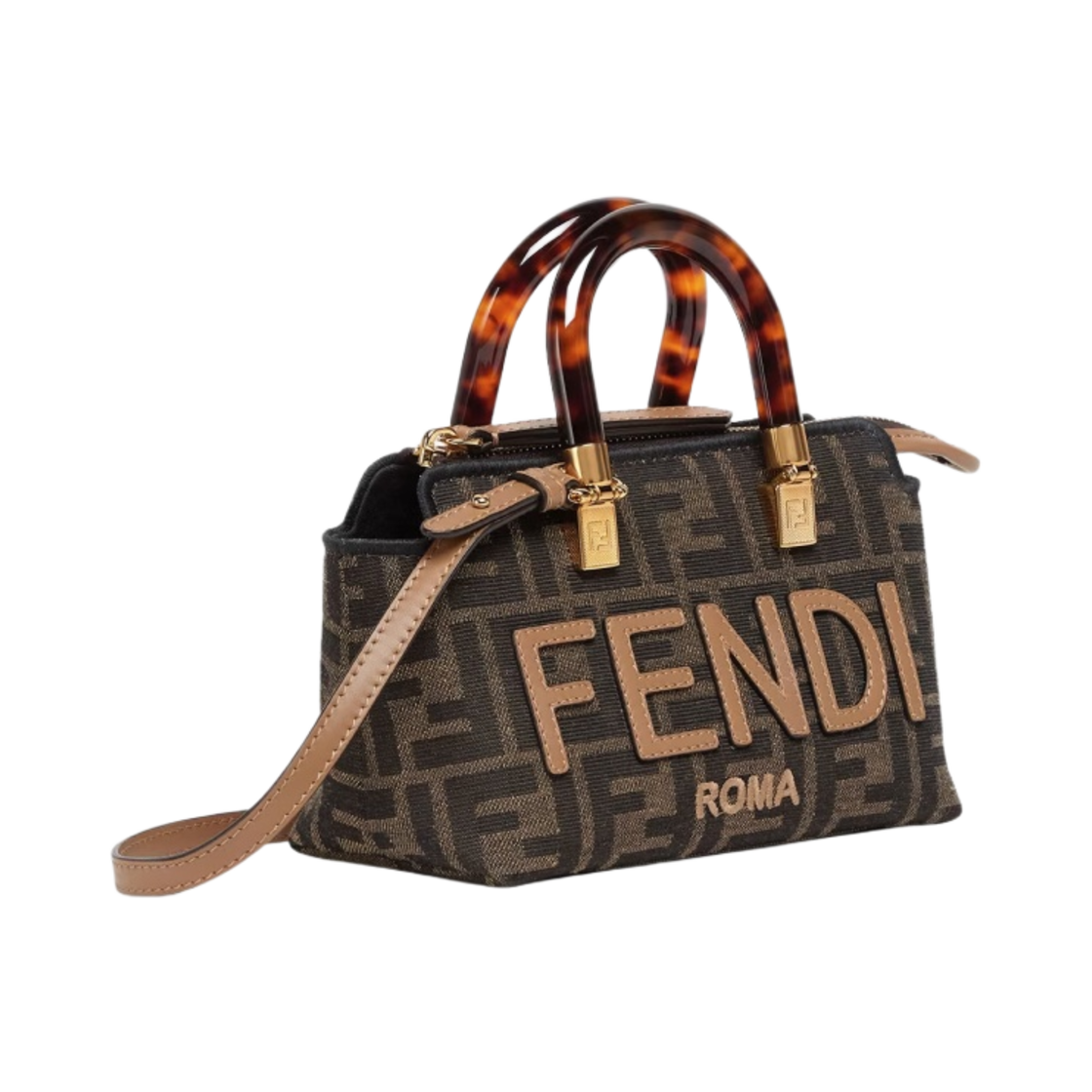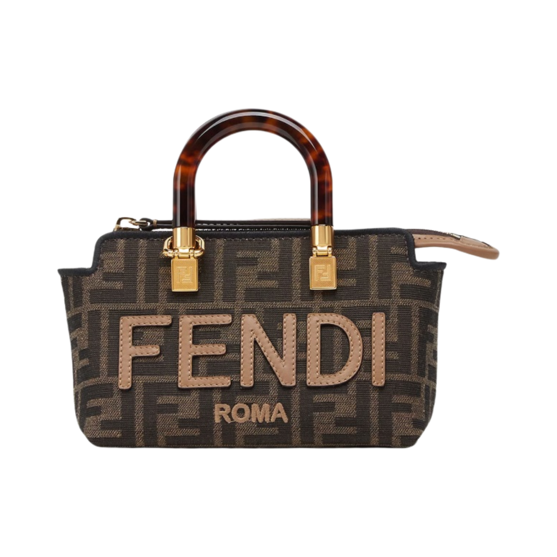 Fendi By The Way Mini FF Fabric Small Boston Bag Brown