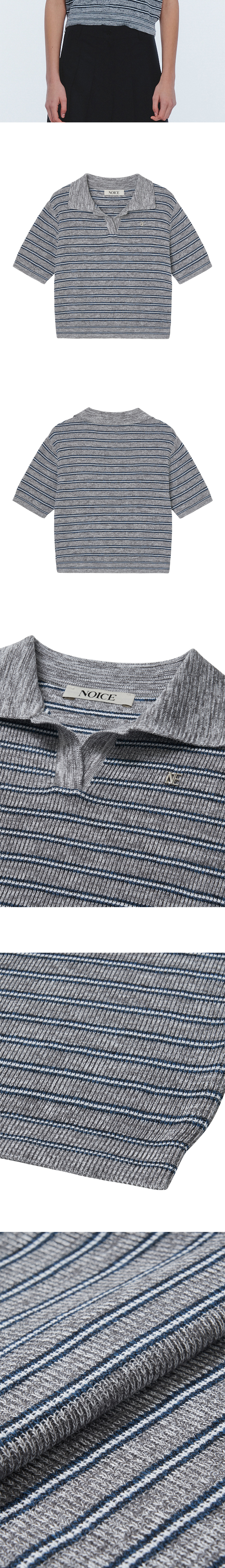 노이스 우먼 로고 스트라이프 니트 폴로 셔츠 그레이