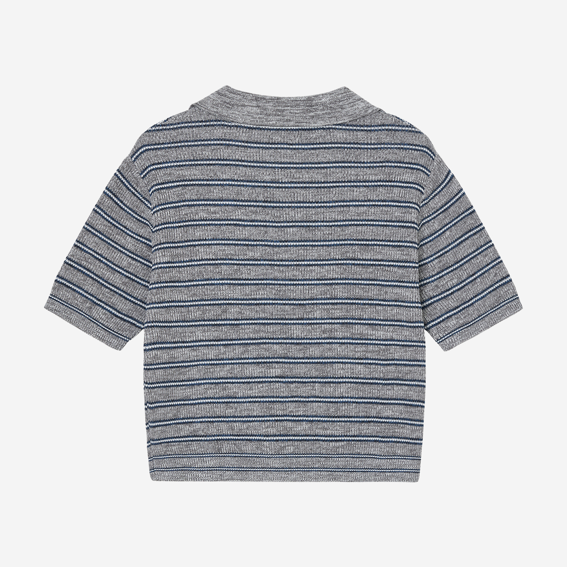 Noice Women Logo Striped Knit Polo Shirt Grey