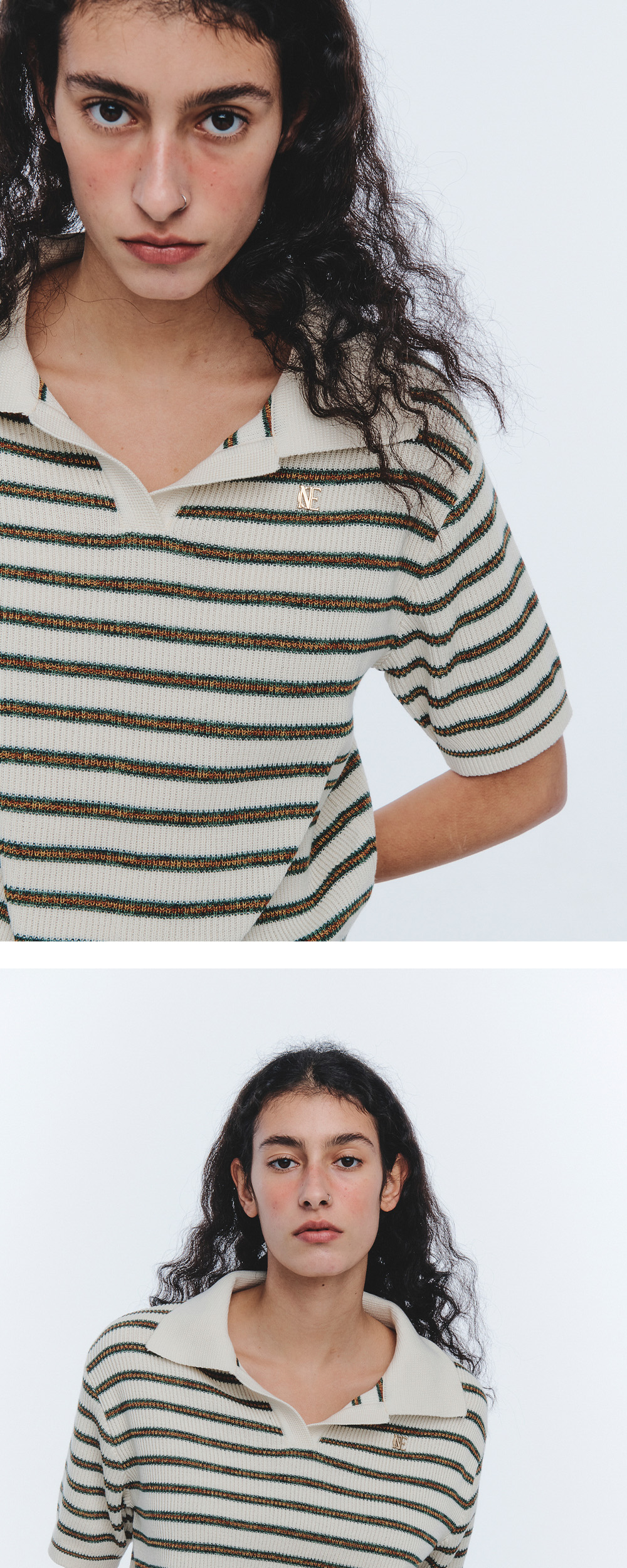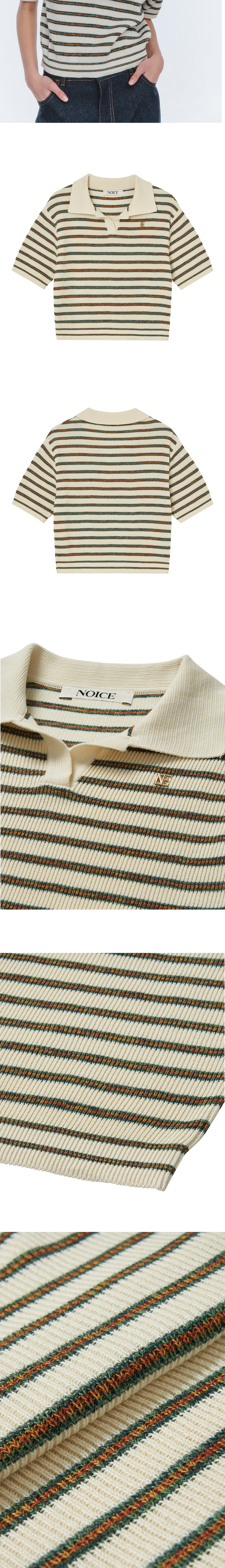 노이스 우먼 로고 스트라이프 니트 폴로 셔츠 옐로우