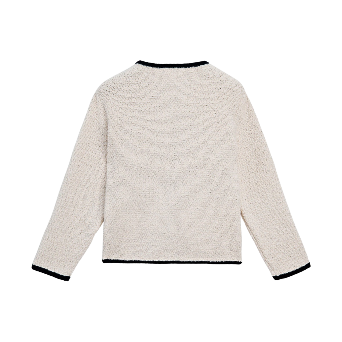 Massimo Dutti Contrast Textured Knit Cardigan Cream