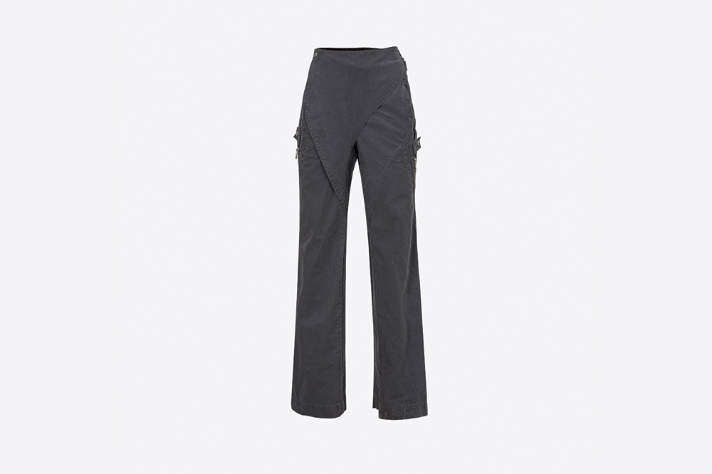 전면에 스냅여밈 레이어드 패널 레이어드 패널과 연결된 핏 조절가능한 탭 전면 지퍼 플라이 전면 두개의 포켓 뒷면에 두가지 방식으로 사용가능한 지퍼포켓 및 하단 플랩장식 로고 각인 하드웨어 Shell : 100% Cotton Made in Korea