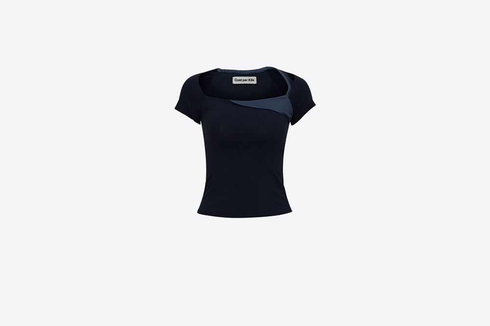 코스트퍼킬로 스퀘어 넥 숏 슬리브 티셔츠 네이비